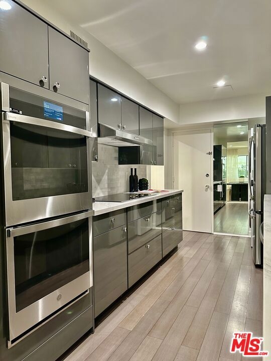 This fully remodeled one-bed, one and a half bath, single-level unit is beautifully situated on one of We Ho's most sought-after tree-canopied streets. An open floor plan with a wall of windows and tree line view. All new recessed dimmable lighting, and new engineered hardwood flooring are used throughout the home. The Chef's kitchens floor-to-ceiling custom cabinetry with new built-ins including washer& dryer. Gorgeous Caesar stone countertops and backsplash under cabinet. Stainless steel single oversized sink and GE appliances.), GE top-of-the line dishwasher, and new fixtures used throughout the home The spacious bedroom with ensuite separate glass shower and clawfoot soaking tub has custom cabinetry. Beautifully maintained building recently painted lobby and hallways with new carpeting. Property amenities include parking, pool, spa,. HOA fee includes water, trash & AC . Near beautiful Kings Road Park, minutes from Gelson's, Melrose Farmers Market, and the best new restaurants, clubs, and storefronts. The perfect condo for a West Hollywood location and lifestyle!