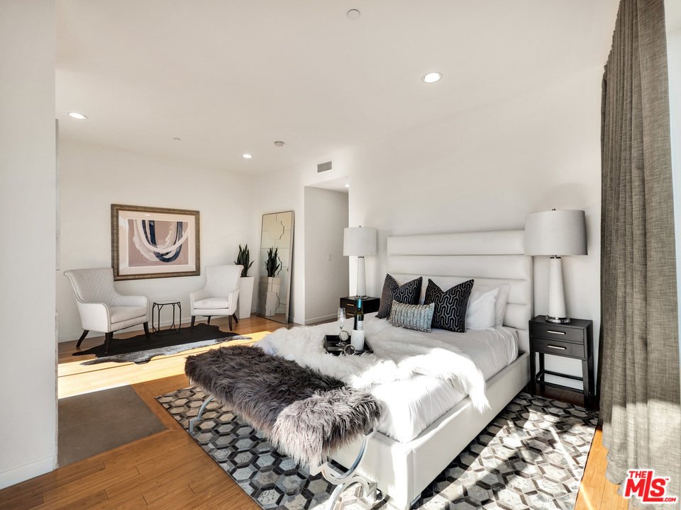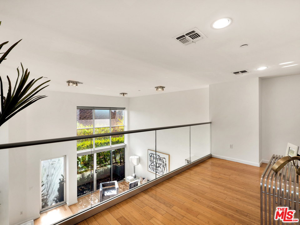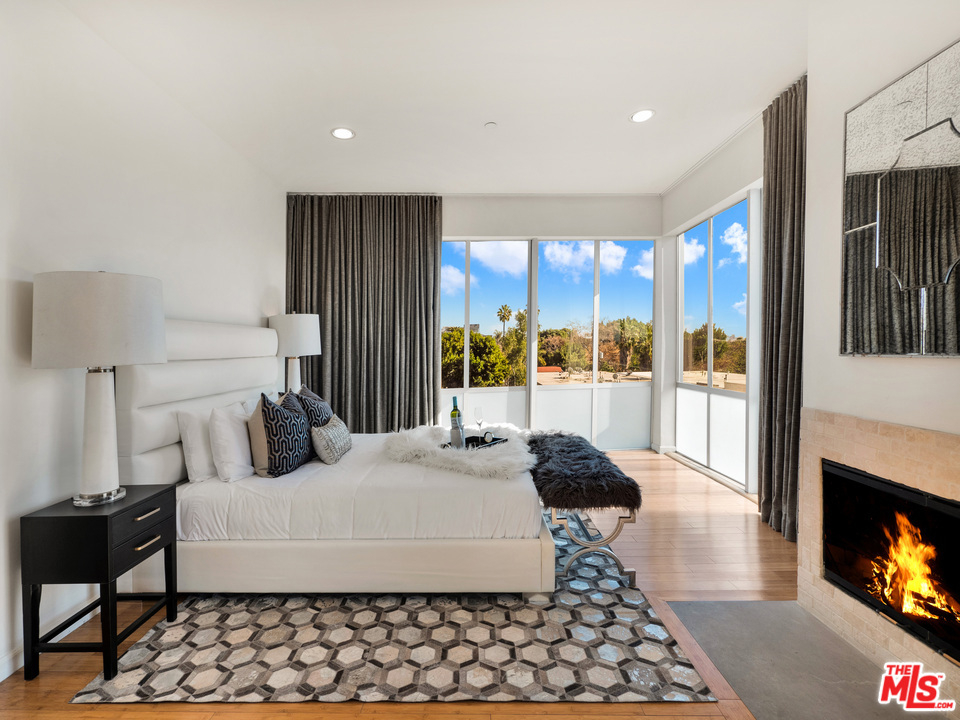 Don't miss this one of a kind stunning Architectural Multi-level End Unit Townhouse! This light, bright, double corner unit faces East, South, and West with panoramic views from the Hollywood Hills through DTLA and past Century City. The entry level floor boasts bamboo floors, 20ft walls of glass, kitchen with quartz counters & Bosch stainless steel appliances, and a private patio decorated with beautiful trees. Follow the stairs to the open loft level perfect for any office or sitting area. The 3rd and 4th levels are both enormous private bedroom suites each with their own balcony and closets. The designated master features a fireplace set between walls of glass showcasing the city views. Above the 4th floor Master is the fantastic private roof deck with sweeping views, built in seating, and a utility kitchen for meal prep while hosting on the deck. Additional features include a 2-car attached private garage with laundry and ample storage. This is a must to see!