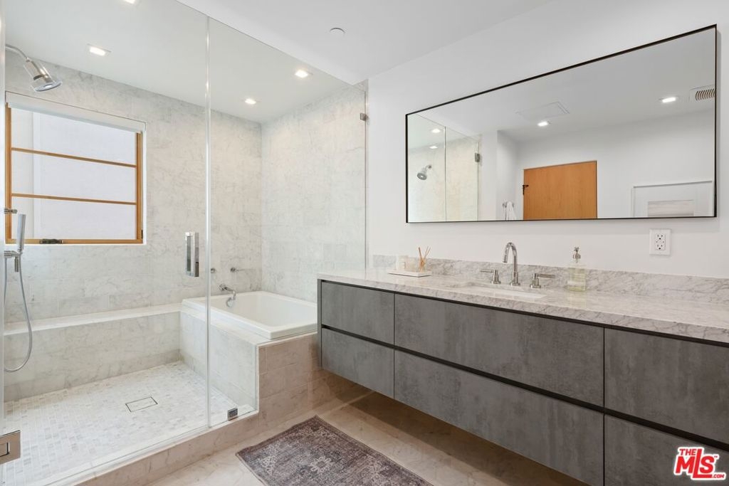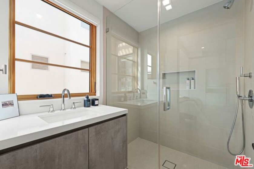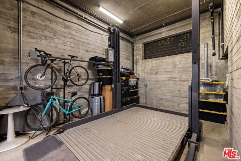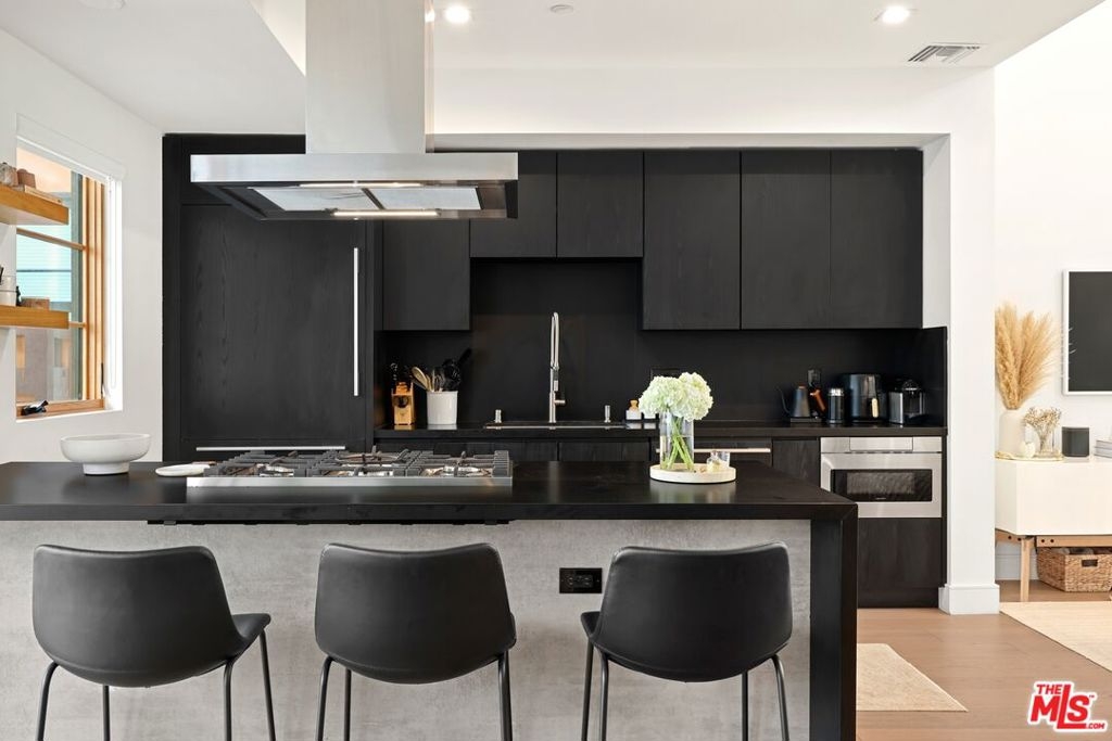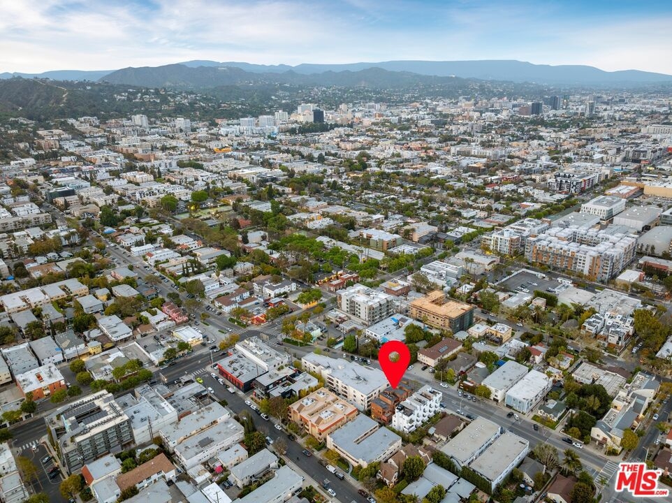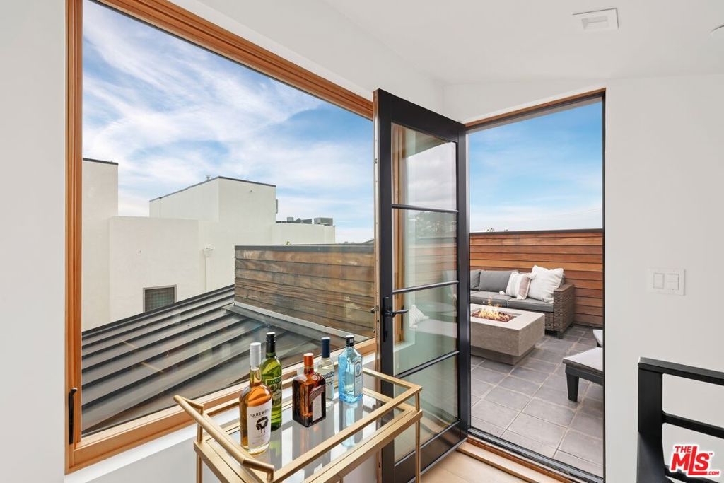 Experience elevated West Hollywood living in this architecturally bold multi-story home one of only four in an exclusive small-lot subdivision with no HOA fees. Enter through striking exposed concrete walls and a dramatic floating staircase that rises from the ground-floor garage with car lift to a private rooftop terrace boasting direct views of the Hollywood Sign, Griffith Observatory, downtown LA, Century City, and beyond. The main level features an airy open layout, with a sleek chef's kitchen, stainless steel appliances, and breakfast bar seamlessly flowing into a sun-drenched living/dining space with soaring ceilings and an inviting patio. Upstairs, the expansive primary suite offers a generous walk-in closet, while two additional bedrooms share a chic Jack-and-Jill bath. On the rooftop, a gas fireplace anchors 360-degree views for the ultimate Hollywood lifestyle all just moments from Melrose Place, Plummer Park, and the best of the city.