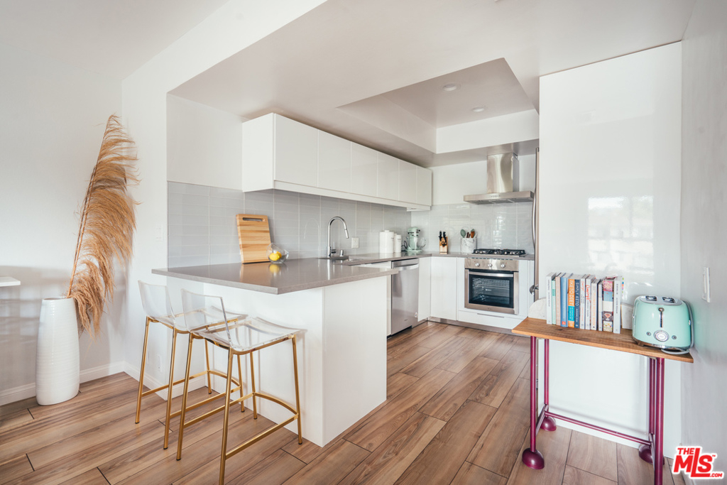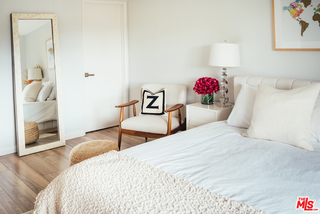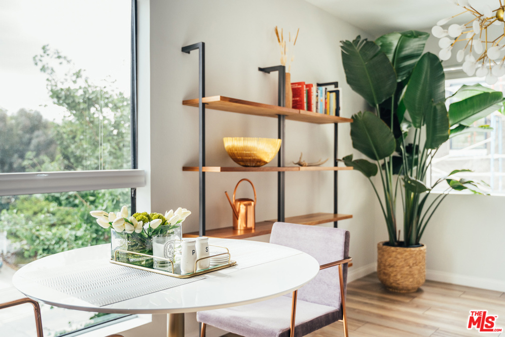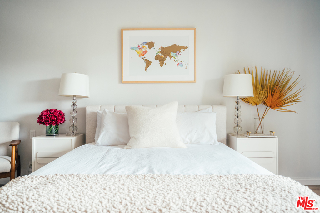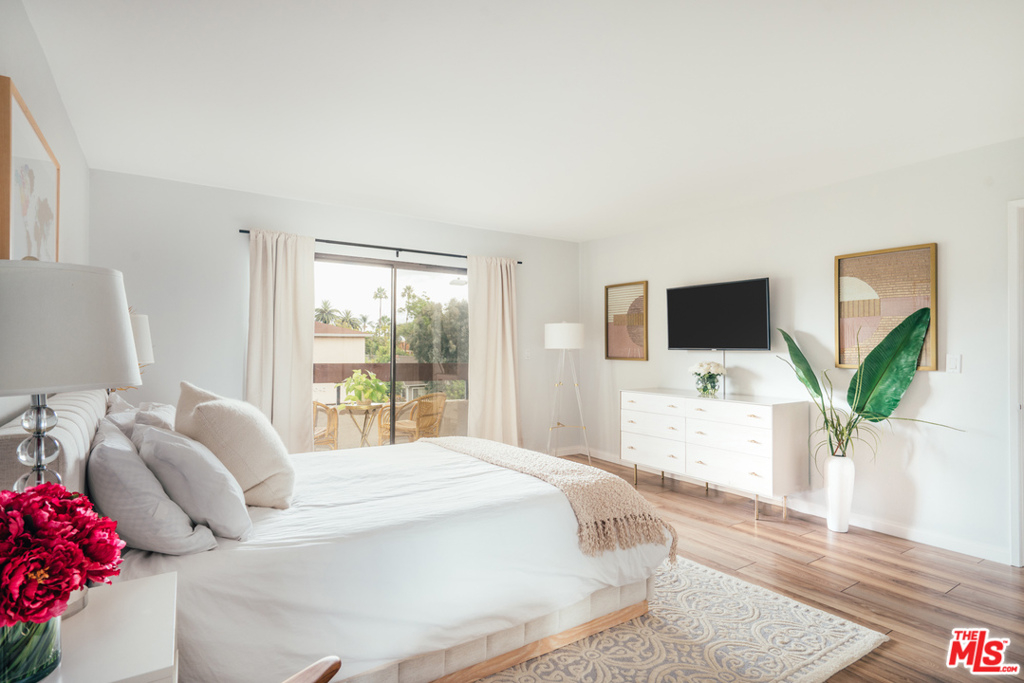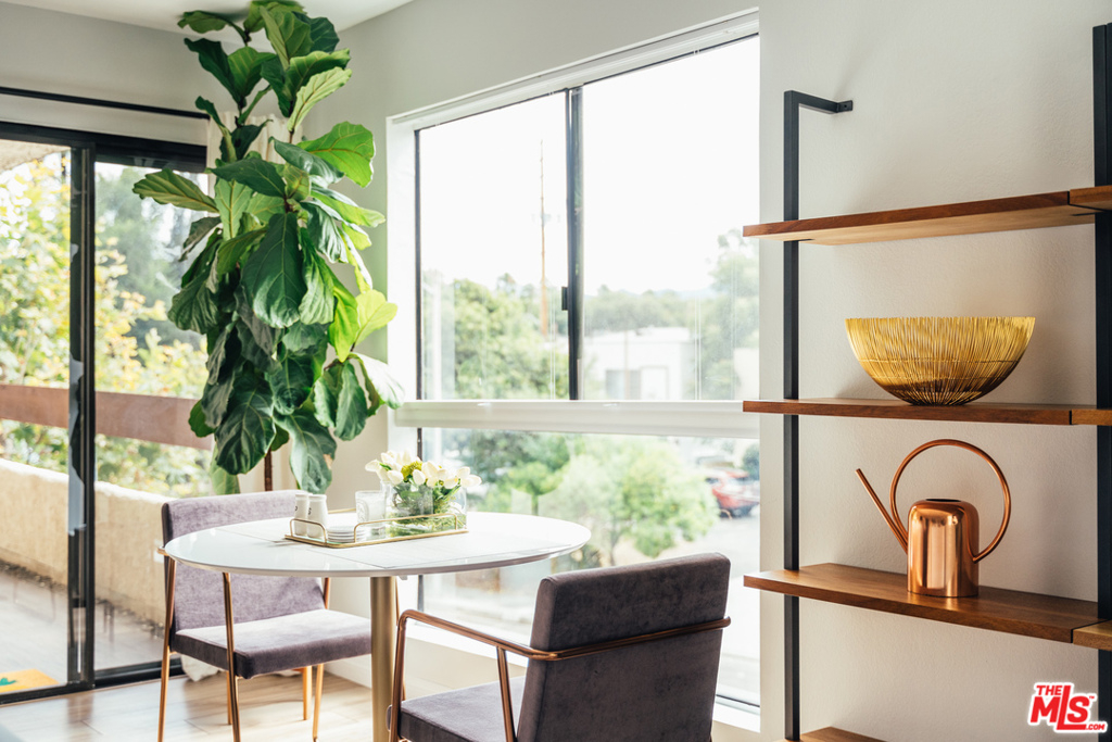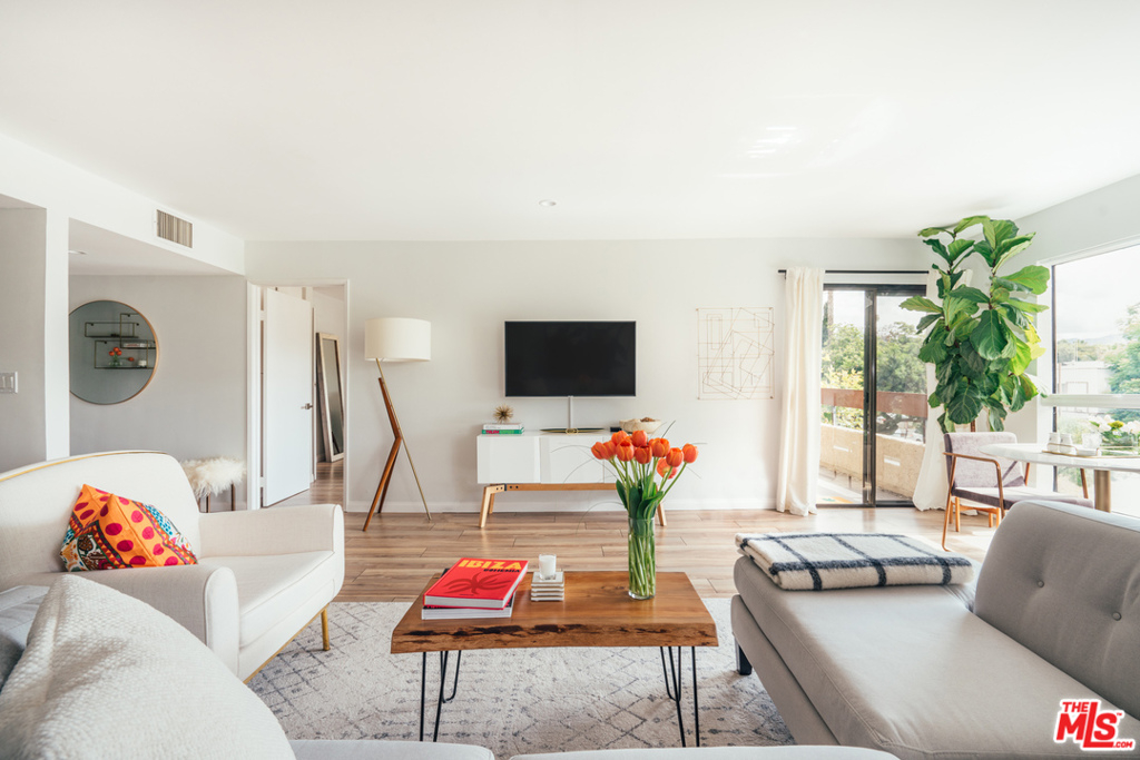 Move right into this design-lovers dream condo in the heart of West Hollywood! Head-to-toe renovation of end corner unit feat. double door entry, elegant entry hall to expansive living room boasting beautiful sunlight from every window. Open floor plan feat. remodeled kitchen w/quartz countes, handpoured subway tile backsplash, stainless steel appl., and modern flat panel cabinetry. Living/dining combo offers expansive space for entertaining, opens to private balcony with city + sky views. Large principal suite, w/sliding door balcony access, feat. ample walk-in closet w/custom Elfa closet, and fresh, clean bath w/matte black hardware, brushed brass lighting, + tile shower over tub. Additional hall ½ bath is accessed off hallway entry. Laundry inside unit feat. new Samsung full-size side-by-side W/D, plus enjoy bonus personal storage unit in garage. New HVAC, new water heater, fresh paint + so much more! Walk to Trader Joe's, Plummer Park, Melrose Ave and the best shops/bars of Weho!