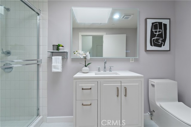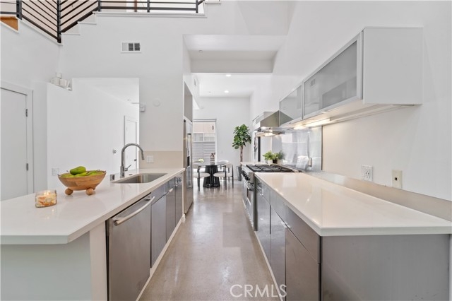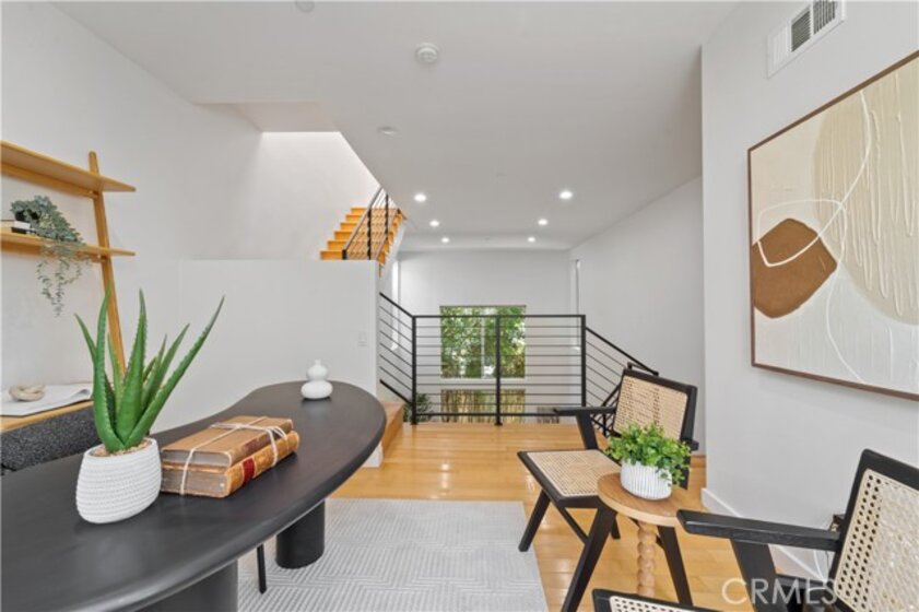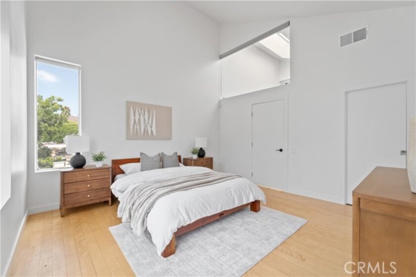 Experience the best of LA living in this sleek, contemporary 3-bedroom, 3-bathroom townhouse in the heart of West Hollywood. Designed for comfort and style, each spacious bedroom includes its own dedicated bathroom, oversize closets, high ceilings offering privacy and convenience. The open-concept layout showcases soaring double-height ceilings, skylights, and walls of glass that flood the home with natural light. A gourmet kitchen with high-end appliances, ample storage, and seamless flow to the dining and living areas makes entertaining effortless. Step out to 2 private outdoor spaces – a front patio and a balcony with views – perfect for relaxing or hosting guests while enjoying city views. Additional highlights include in-unit laundry, generous closet space, gated entry, interior and exterior security cameras, and a boutique community of just four residences. Underground gated parking provides two side-by-side spaces plus bonus storage Located within walking distance to shops, dining, and public transit, this property offers the perfect blend of luxury and convenience. This is sophisticated LA living at its finest
