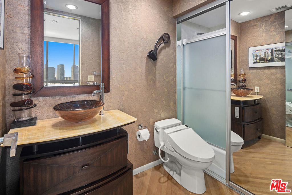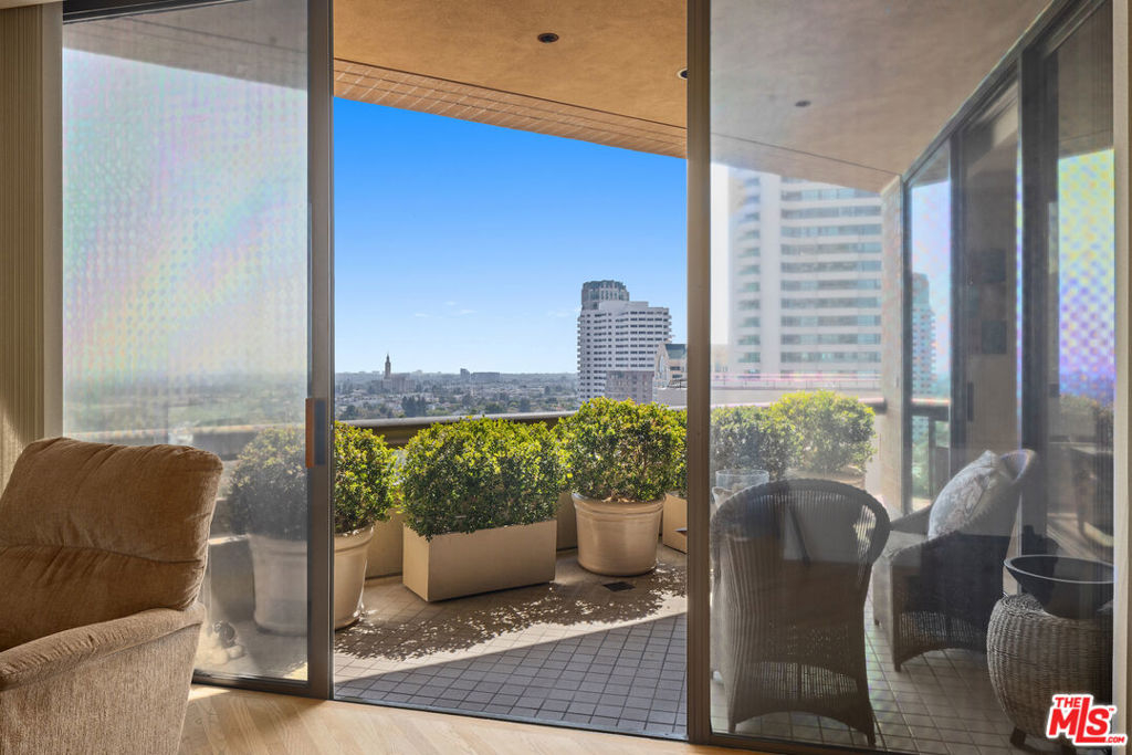 Incredible Panoramic Views | Coveted Southwest "05 Stack" | The Mirabella, Wilshire Corridor Positioned in the highly sought-after southwest"05stack," this designer residence at the prestigious Mirabella offers an unparalleled combination of light, scale, and dramatic views. Set on the quiet side of Wilshire, the "05 stack" extends further out than any other part of the building, creating unobstructed views in every room that extend from Downtown LA to the ocean. A double-door entry welcomes you into an expansive, light-filled floor plan featuring 9-foot ceilings, hardwood floors, a stone fireplace, and walls of glass that seamlessly connect to a spacious view terrace. The open living room flows effortlessly into the dining area, which includes a wet bar that is perfect for entertaining. An elegant powder room adds to the home's sophistication. The second bedroom suite (currently configured as a media room) also opens to the terrace, while the primary suite occupies the opposite wing, offering exceptional privacy. The primary retreat is generously scaled with an enormous remodeled bath, a walk in closet, plus additional closets, custom built-ins, and its own private view balcony. The gourmet kitchen showcases stainless steel appliances ,hardwood floors, a breakfast area with view balcony, a center island with breakfast counter, black granite countertops, and a laundry closet for added convenience. Residents of the Mirabella enjoy the very best in full-service luxury living: 24-hour concierge, doorman, and valet, Fitness center, swimming pool, spa, and sauna, conference/party room, 2 side-by-side parking spaces plus additional storage, secure entry off Wilshire. Perfectly situated in the heart of the Wilshire Corridor, this residence is minutes from Beverly Hills, Century City, Westwood Village, UCLA, Cedars-Sinai, and some of Los Angeles' finest dining and shopping