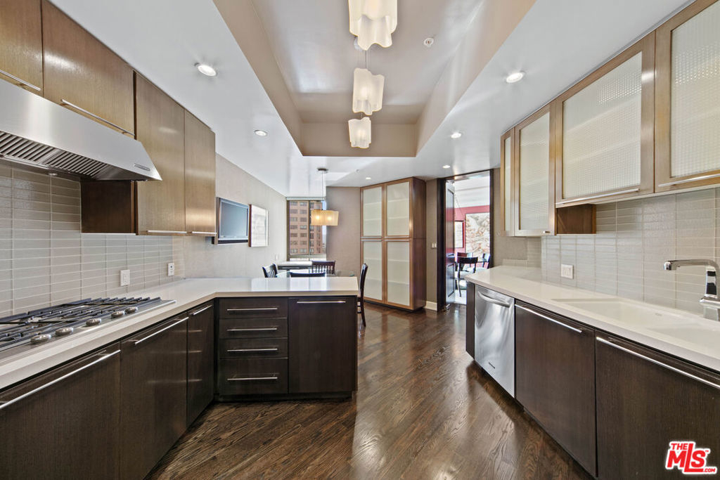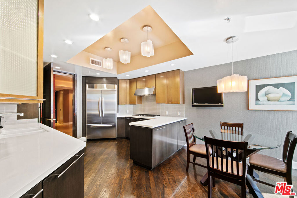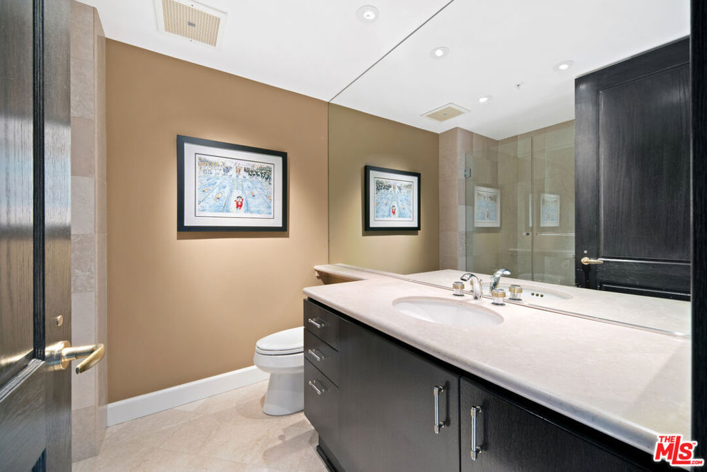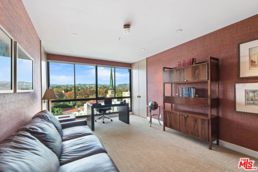 Designed to mirror a luxury Park Avenue residence, this large single-level unit is one of a kind. Rich and refined finishes in this expansive unit that affords both north and west facing views. Redone by a New York art collector, who has set the stage for a jazzy cocktail party. All guests are welcomed with valet service and doors held open. Upon arriving to the unit, take in the views across the living room to Westwood Hills and Bel Air. To the right past the bar, you have one of the three possible bedrooms. A great possible den that enjoys the church steeple view and the bells that ring ever so beautifully each day. Past the formidable black fireplace and to the left of the living room you enter the dining room to accommodate holiday dinners, from here you see west and the powerful view. Through the swinging door you enter the kitchen, which is also accessed at the entry and exits towards the east wing and its two additional rooms. First, a great home office with rhubarb textured wallpaper. You would want to stay a few hours to work or take up up a book, or enjoy some great works of art on display. Next, an enormous primary suite of the scale no longer built today. The Blair House is a community, with an up to date fitness center, expansive pool deck, tennis/basketball court, and a redone club house/conference room. Public records shows bedroom count as two bedrooms. Third bedroom, the den, does have its own closet.