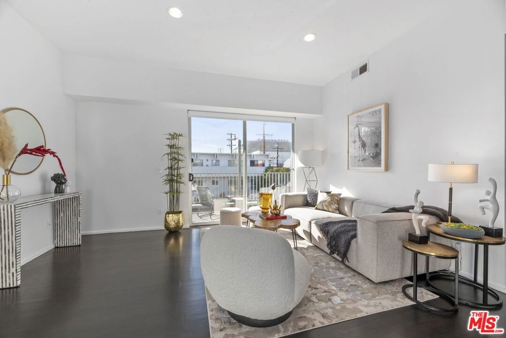 Welcome to Unit #5 at 1050 N. Gardner! Here is a rare opportunity to live in this stunning building designed by the renowned architect, Lorcan OHerlihy, which was previously featured in Dwell Magazine. With only 10 units, this small complex offers a sense of extended privacy and tranquility. Unit #5 is a 2 bedroom, 2 bath home with an open floor plan that gets flooded with wonderful natural light. This property boasts bright and airy spaces with hardwood floors and modern styling. The kitchen which opens up to the living and dining area, offers a great space for entertaining or for spending a cozy evening in. The balcony, which extends past the length of the living room, provides ample room for outdoor relaxation and a view of the Hollywood hills. The large primary bedroom allows you to stretch out while providing a wall-to-wall closet and an en suite bathroom. A spacious second bedroom with an adjacent second full bathroom rounds out this fantastic living space. Other must-haves include a stacked washer/dryer unit, an outdoor closet for extra storage, recently refinished floors, new shades and fresh paint. Underground parking with two NON TANDEM spaces. Elevator access and a secure landscaped courtyard. Located in the highly desirable neighborhood of West Hollywood, you will be just minutes away from the most popular restaurants, shops and bars that Los Angeles has to offer.