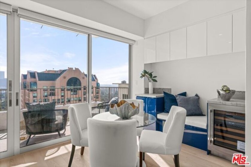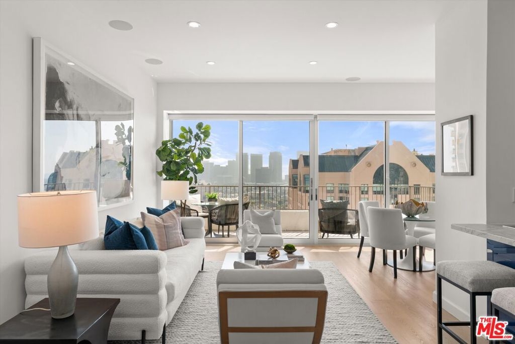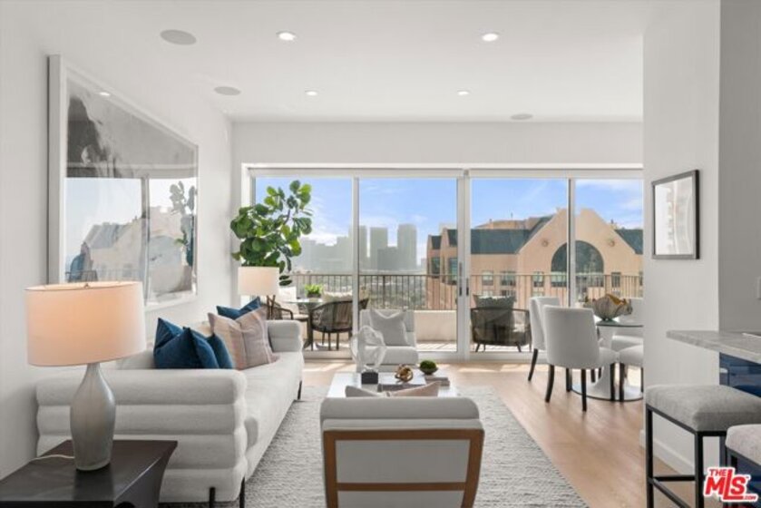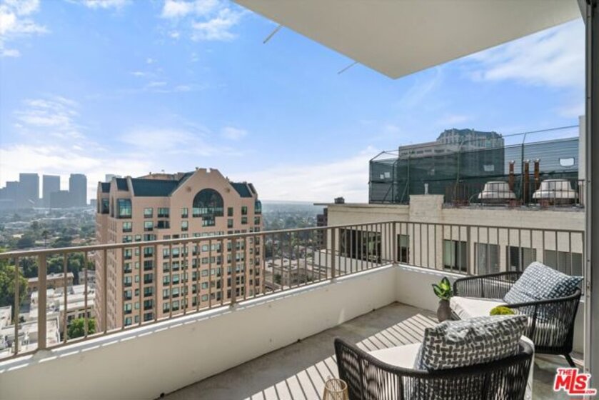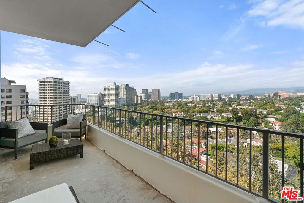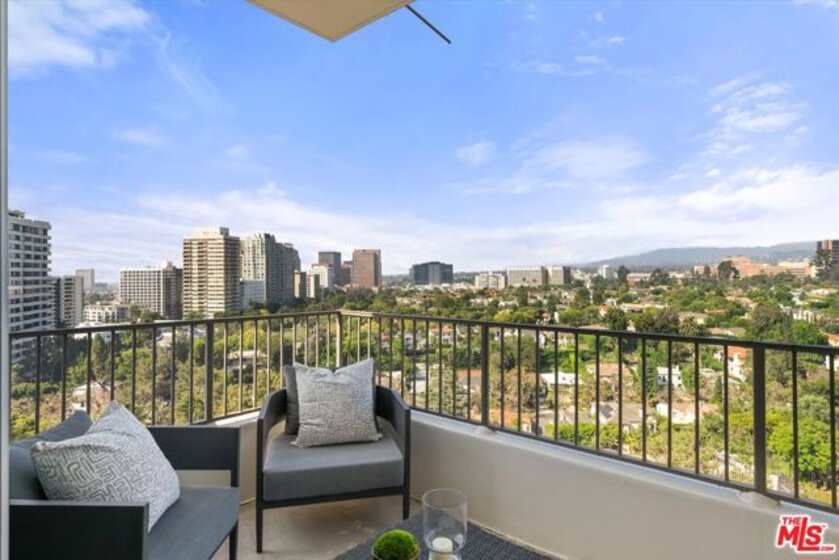 Totally remodeled 2BD/2BA corner unit with south-facing Century City views from the living room and northern Holmby Hills views from the primary bedroom. Newly installed double-paned windows. Balconies off living room and bedroom provide approx. 275 sq ft of additional usable space per CC&Rs. High-end upgrades include Miele appliances, Bespoke refrigerator, Sub-Zero wine fridge, custom cabinetry, water filtration system, and smart touch faucet. Hidden closet with Sonos sound, Wi-Fi hub, and Lutron lighting throughout; TV ready for up to 65", all controlled by mounted iPad. Approx. 10-ft ceilings with recessed lighting and automatic shades. Custom stone baths; primary suite with custom closets and dual sinks. Full-service, non-smoking building with 24-hr concierge, valet parking, pool, fitness center, banquet and conference rooms, on-site management,, move-in/move out fee, guest rooms. Condo is now completely unfurnished. No smoking building - UTILITIES INCLUDED in HOA dues.