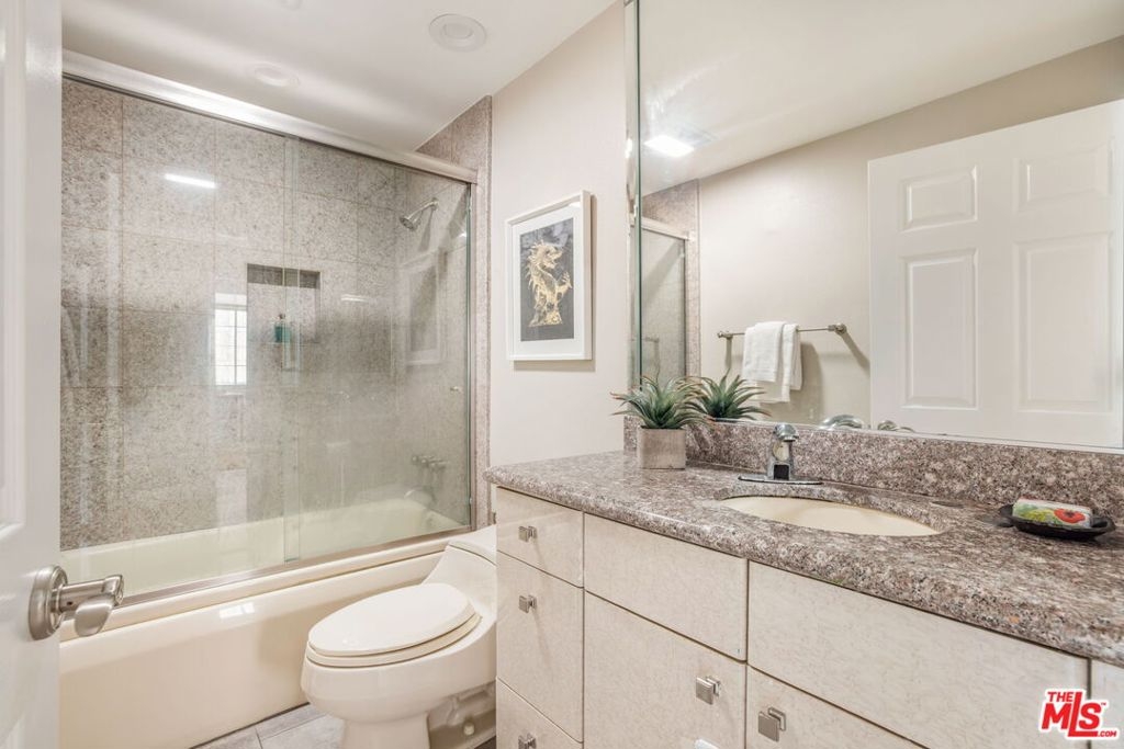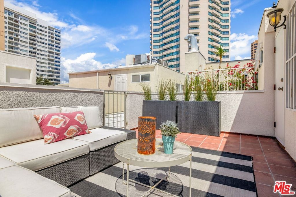 Experience elevated Westwood living in this light-filled end-unit condo at 10511 Ashton Avenue, Unit 305. Offering 3 bedrooms, 4 bathrooms, and 1,626 square feet, this spacious residence combines volume, versatility, and exceptional indoor-outdoor living -- complete with a private rooftop deck showcasing sweeping city views. Enter to an inviting foyer that leads to the expansive living room set beneath soaring double-height ceilings, featuring abundant natural light, a custom built-in with a bar, cozy gas fireplace, and direct access to a private balcony. The adjacent dining area is ideal for entertaining, illuminated by a modern chandelier and accented with built-in display shelving. The remodeled kitchen is both stylish and functional, appointed with granite countertops, white shaker cabinetry, stainless steel appliances, and a sunlit breakfast nook. The main level offers exceptional convenience with a powder room and two generously sized bedrooms, inclusive of the primary suite featuring a walk-in closet and a luxe en-suite bath with dual vanities and a tiled shower. Upstairs, a sunny loft with a full bathroom provides versatility, ideal as a third bedroom, home office, or additional living space. Here you can access the home's standout feature, the private rooftop deck. As one of only a few residences in the building with this feature, you'll enjoy the best of Southern California living with space to lounge, entertain, and dine al fresco against a backdrop of stunning city views. Additional highlights include light-toned wood floors, in-unit laundry, secure controlled-access parking for two vehicles, guest parking, and HOA dues that cover gas, water, and trash. Ideally located in prime Westwood just south of Wilshire Boulevard, this home is moments from Westwood Village, UCLA, Westfield Century City, top-rated schools, and a variety of lifestyle amenities. A rare opportunity to own an updated, light-filled condo with private outdoor space in one of Los Angeles' most sought-after neighborhoods.