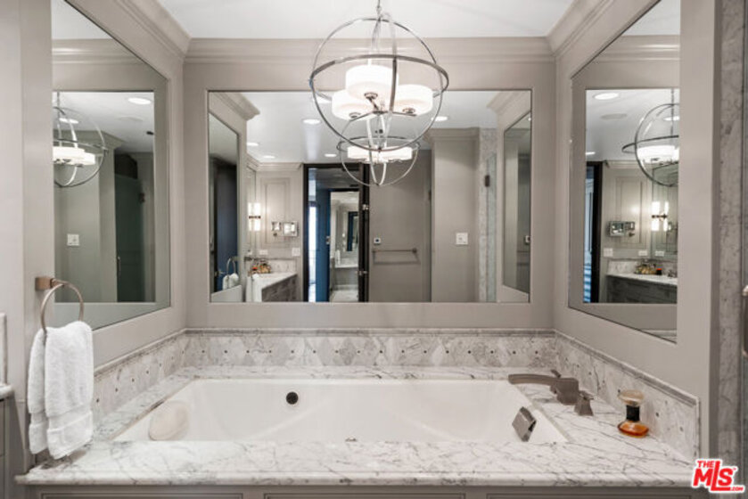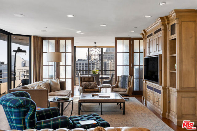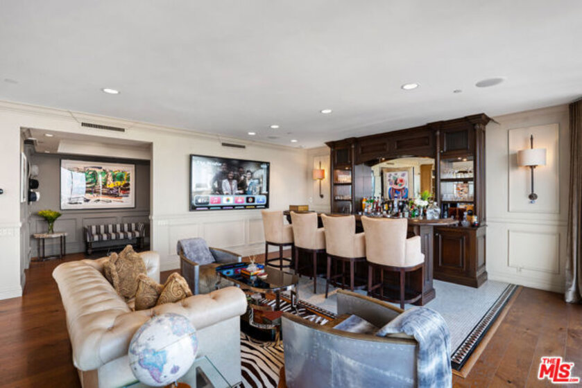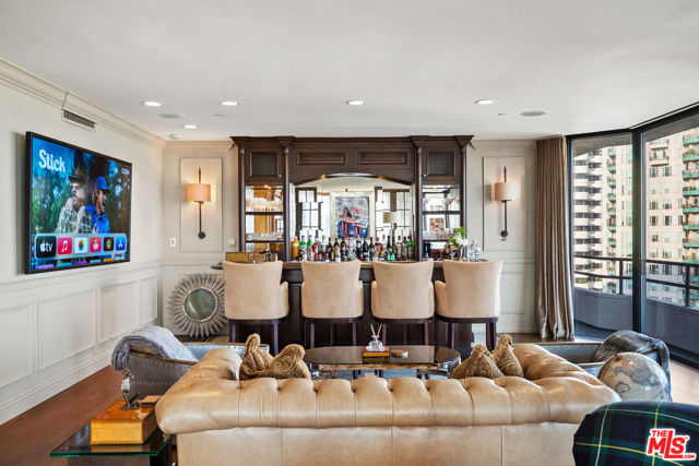 Welcome to one of the most coveted addresses on the Wilshire Corridor, Wilshire House, the only "A" building with wrap-around balconies. This completely remodeled southwest-facing residence showcases spectacular city vistas, ocean views, and Catalina Island on a clear day, all framed by floor-to-ceiling glass and a balcony that spans the length of the condo. Step into a grand marble entry that flows into a sophisticated living space with hardwood floors and abundant natural light, ideal for entertaining. The dining room opens to the stunning views and features a one-of-a-kind custom bar designed for unforgettable gatherings. The kitchen offers new appliances and elegant finishes. The luxurious primary suite boasts two walk-in closets and a marble bath. The second bedroom with its own bath works beautifully as a guest room, den, or home office. Special features include a built-in wine cellar and custom leather floors in the dining room and primary bedroom. Wilshire House Amenities: 24-hour valet & security, In-house engineers for on-demand repairs, lit tennis court, Saline swimming pool, & spa, fire pit & outdoor entertaining area, State-of-the-art fitness center, Recreation/banquet room, library, elegant lobby with a tranquil waterfall feature. No open houses permitted; private tours available by appointment.