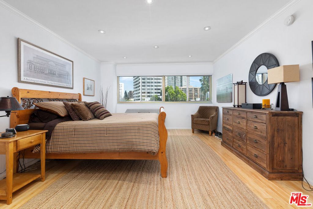 Located in the iconic Crown Towers, Residence #503 presents an exceptional opportunity to own in a premier full-service building at an attractive price point. This desirable corner unit offers sweeping city vistas stretching across Century City and Holmby Hills. The well-proportioned layout includes two bedrooms and two bathrooms with an open living and dining area filled with natural light and access to a spacious private balcony.The home offers a wonderful canvas to customize while already featuring thoughtful upgrades such as bamboo flooring, recessed lighting, dual-pane windows, and an updated kitchen appointed with quartz countertops, stainless steel appliances, and a convenient breakfast bar. The generously sized primary suite provides a relaxing retreat with two closets, including a walk-in, along with a private en-suite bathroom.Residents enjoy an array of full-service amenities including 24-hour valet and concierge, professional on-site management, a pool, fitness center, sauna, and a comfortable residents' lounge. HOA dues cover water, trash, building insurance, and cable TV with HD/DVR. Ideally situated just moments from Westwood Village, University of California, Los Angeles, Century City, and Beverly Hills, this is a fantastic chance to create your ideal home in one of Los Angeles' most desirable locations.
