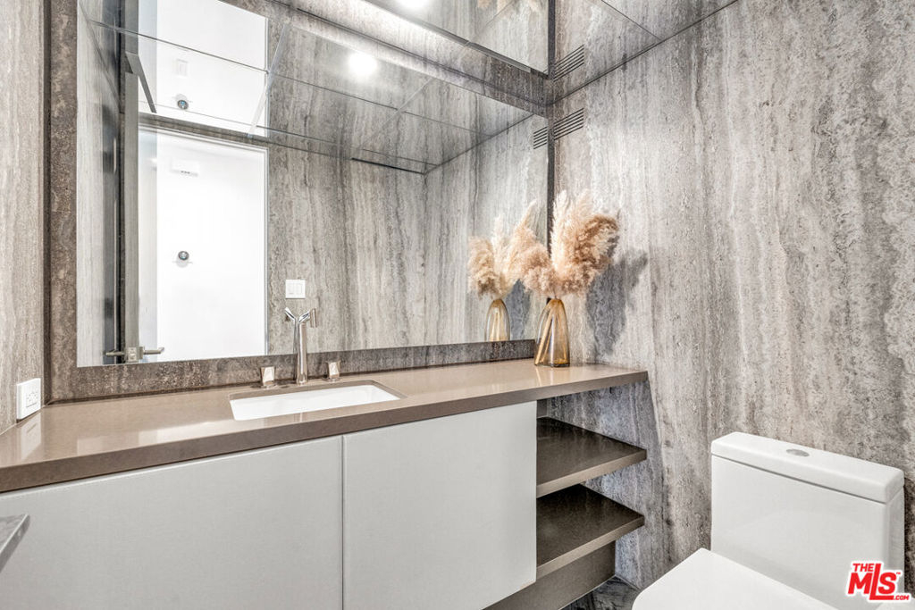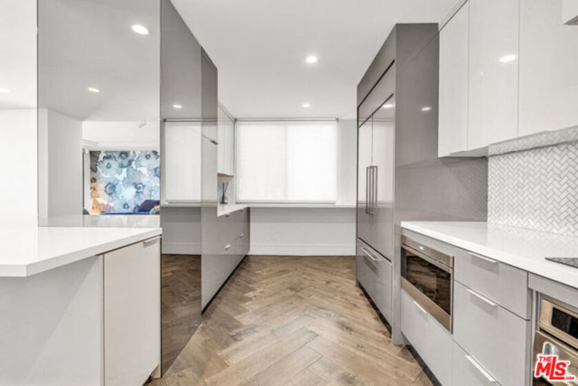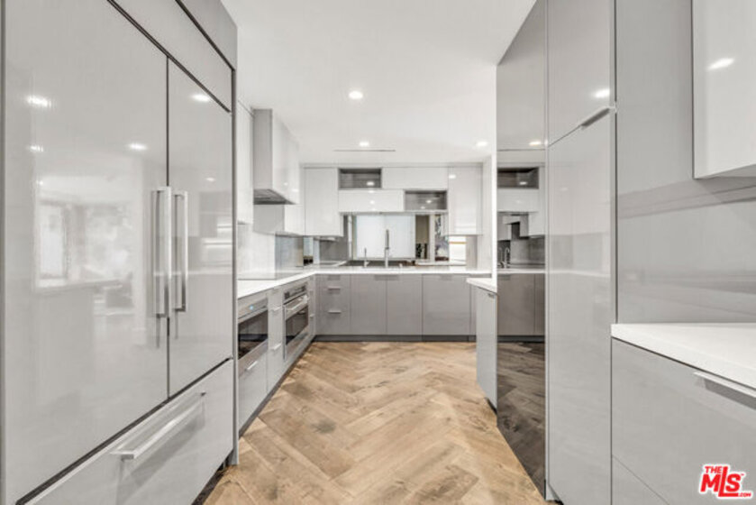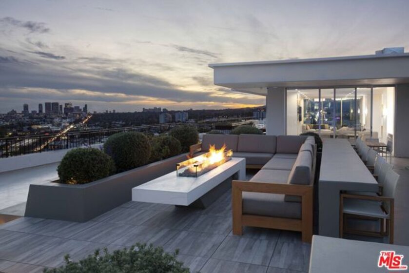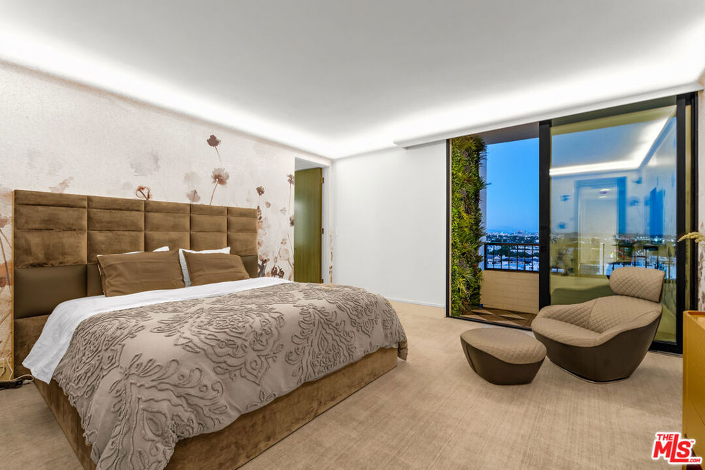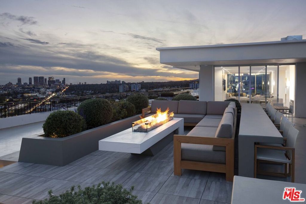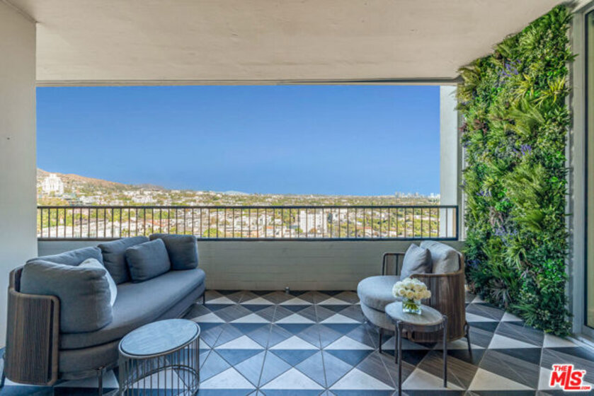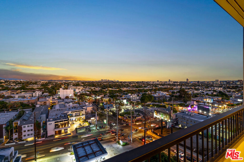 Meet Residence 1404, a meticulously designed home by renowned interior designer Kara Smith, offering a refined blend of sophistication and comfort within Empire West. Perched high on the 14th floor, this coveted northeast corner residence captures sweeping city and Hollywood Hills views from every room. The thoughtfully renovated 2-bedroom, 2.5-bath layout showcases imported fixtures, herringbone hardwood floors, custom electronic shades throughout, and custom designer wallpaper throughout. The gourmet kitchen is outfitted with Wolf and Sub-Zero appliances, a U-Line beverage fridge, and sleek custom cabinetry. The family room features a fireplace elegantly set beneath the TV, creating a warm ambiance. The elegant primary suite opens to the terrace overlooking the Hollywood Hills and includes electronic blackout shades, a spa-like bathroom with soaking tub, separate shower, and a custom walk-in closet. Residents of Empire West enjoy an elevated lifestyle with 24-hour security, a dedicated doorman, and valet parking. Indulge in exclusive amenities, including a rooftop pool and deck with firepit, and BBQ, and clubhouse with indoor and several outdoor living spaces that offer stunning 360-degree views of Los Angeles, a full-sized tennis court and fitness center. Experience modern luxury living at its finest in the most exceptional unit Empire West has to offer. Located in the heart of West Hollywood, adjacent to Sunset Blvd with all your trendy restaurants and nightlife, and centrally located to all of the best parts of Los Angeles!