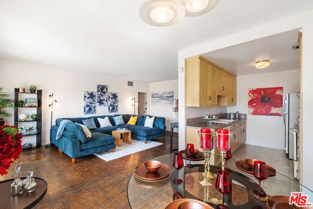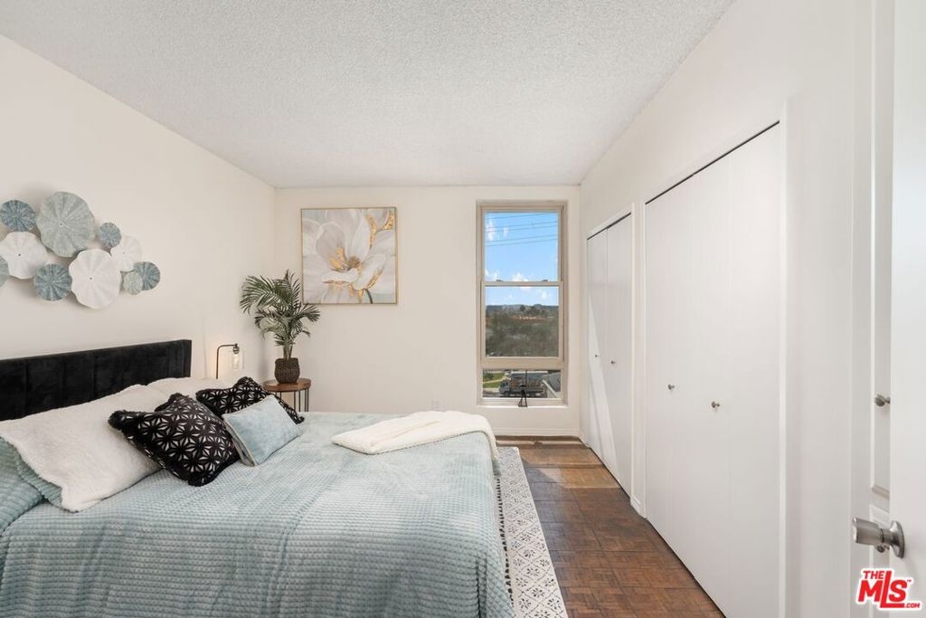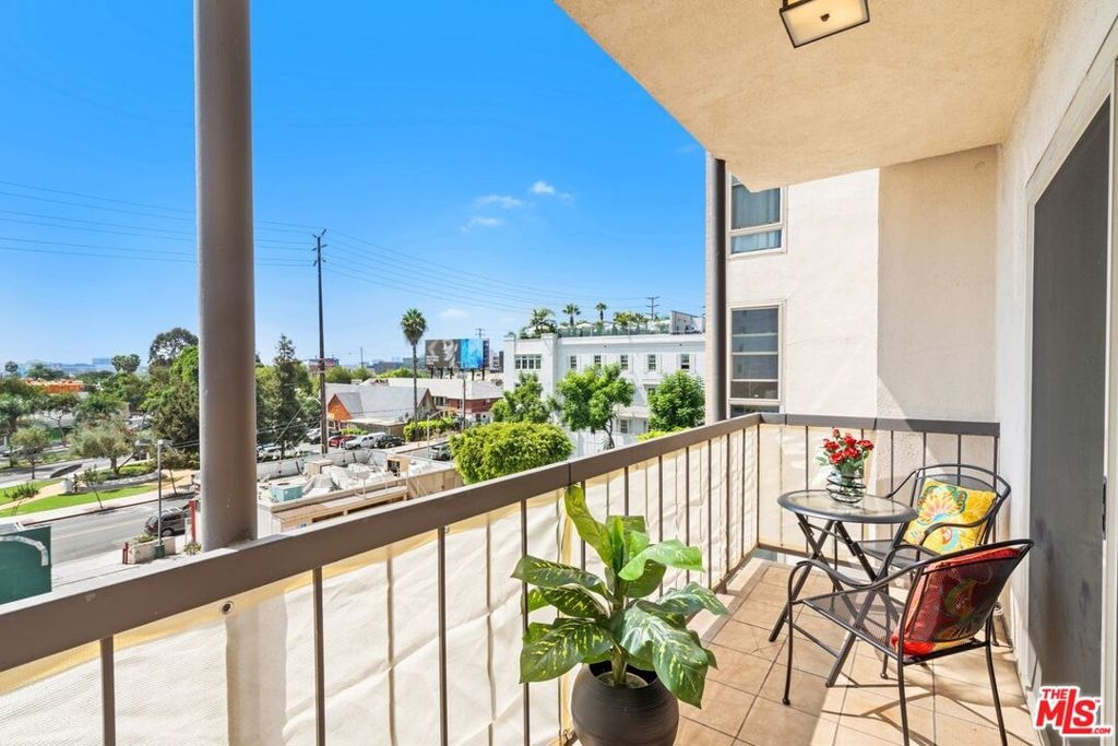 **Incredible opportunity** to customize this spacious, light-filled one-bedroom condo with south-facing views and a large balcony. The condo has higher-than-usual ceilings, parquet wood floors, & central AC/Heat. The bedroom has a wall of wardrobes/closets. The unit has been recently painted & is a perfect blank slate to make it your own. Close to West Hollywood's best dining, shopping, and nightlife. This well-managed building includes amenities such as an indoor pool, extra storage, laundry room, rooftop sun deck, clubhouse, bike storage, and secured parking. The low HOA dues also include earthquake insurance. In-unit laundry permitted with HOA approval