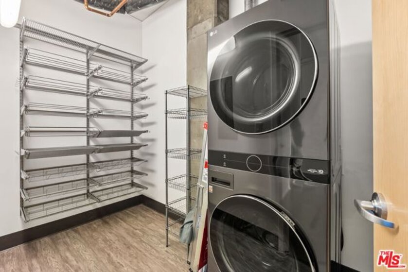 Step into one of the largest and most livable one-bedroom, one-and-a-half-bath residences at Elleven in the heart of DTLA's Social District. This thoughtfully upgraded home is designed for modern city living and truly stands apart. Highlights include: Custom walk-in primary closet with built-in shelving and mood lighting, a dedicated storage unit conveniently located next to your parking space, an EV charger installed at your assigned parking spot, a newer 3-year-old A/C system, and a full-size, vented washer and dryer. The wide-open floor plan features soaring ceilings, engineered maple hardwood floors, and expansive east-facing windows with a Juliet balcony offering open park and city views. Overlooking South Park Commons, your sightline extends across greenery and open space not directly into a neighboring building creating rare privacy and a true sense of openness in the heart of downtown. The spacious kitchen flows seamlessly into the oversized living area, ideal for entertaining or relaxing at home. Both bathrooms have been tastefully updated, blending comfort and style. The Elleven Bldg offers full-service amenities including: 24-hour front desk and security, on-site management, expansive 4th-floor terrace with pool and spa, Viking BBQs, fire pit, and multiple lounge areas. Just steps from: Crypto.com Arena, L.A. Live, Whole Foods Market, the weekly farmers market, and some of DTLA's top restaurants. Convenient access to Pico Metro, USC, and major upcoming global events including the 2026 World Cup, 2027 Super Bowl, and 2028 Olympics. Don't miss out! Ask about available Buyer incentives.