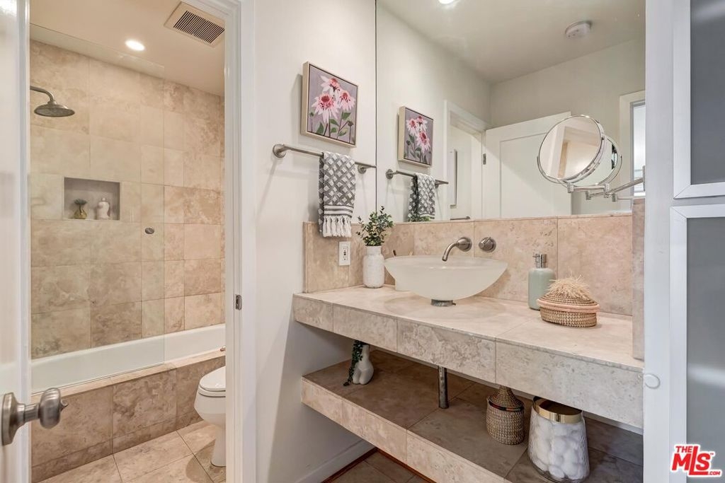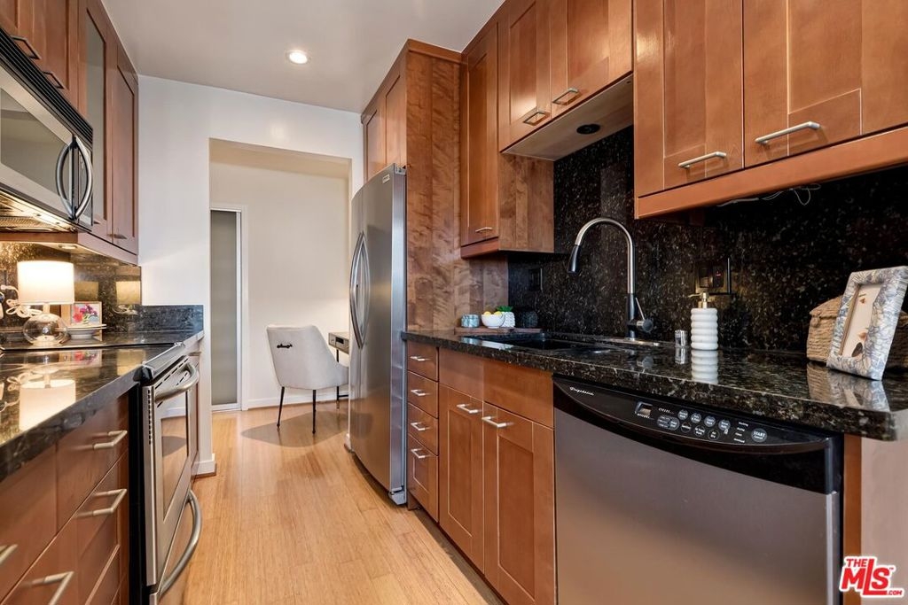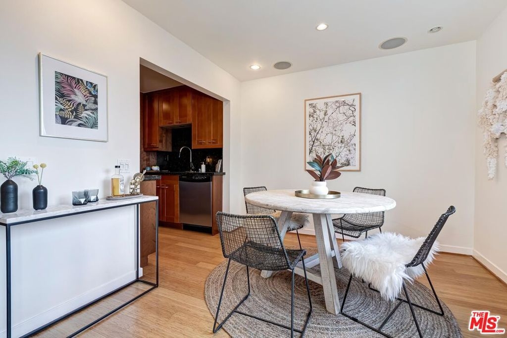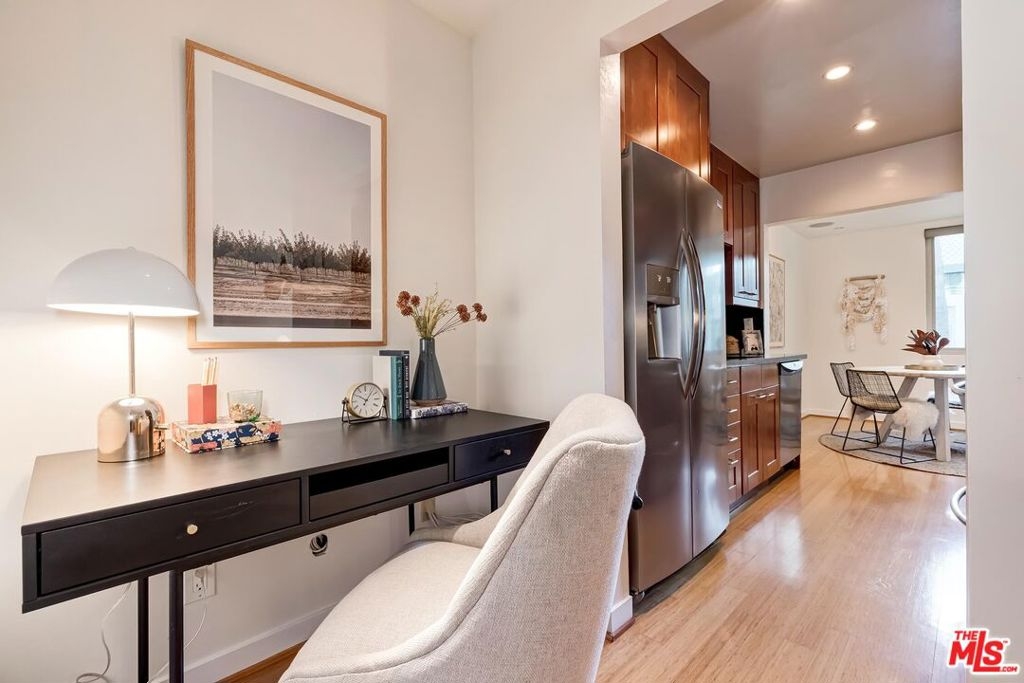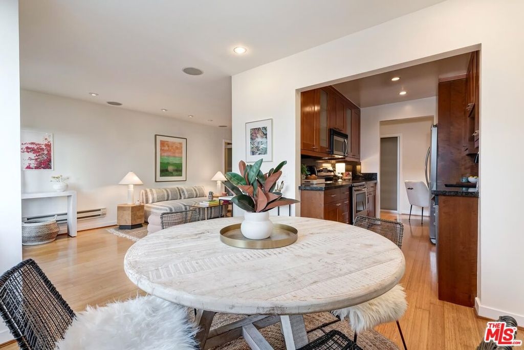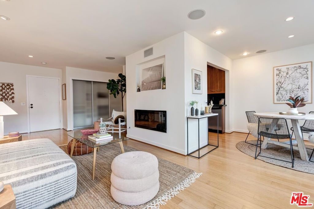 Located just minutes from the amazing shops and restaurants that line both Sunset and Santa Monica Boulevard, this spacious 1 bedroom, 1 bathroom condo truly has it all. The moment you step inside the bright, top floor unit you notice the attention to detail, from the bamboo flooring and recessed lights to the large French doors that open onto a covered, private balcony. The living area features a glass front gas fireplace, wall of custom closets and a variety of options for your home office or dining room layouts. The kitchen has ample ceiling height cabinets, straight edged granite counter tops, stainless steel appliances and is open on either end creating a great flow for relaxing or entertaining. Finally, the large, light filled bedroom has plenty of additional storage and a spa like ensuite bath. Make sure you don't miss out on your chance to own this incredible piece of property!