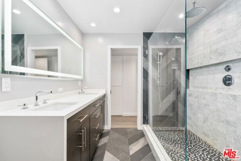 Stylish West Hollywood corner condo located just off the Sunset Strip and adjacent to Beverly Hills. This residence has high-quality finishes and a cohesive, modern color palette throughout. Light and bright living and dining areas feature a fireplace, walls of glass, and direct access to a wrap-around balcony with treetop and city views. The kitchen offers stainless steel appliances, including a wine refrigerator, center island with breakfast bar and storage, soft-close cabinetry, and an enlarged pass-through ideal for entertaining. The primary suite includes a fireplace, custom walk-in closet, and access to a private balcony. Modern bathrooms showcase contemporary finishes and thoughtful design. This home offers comfortable, turnkey living in a prime West Hollywood location.