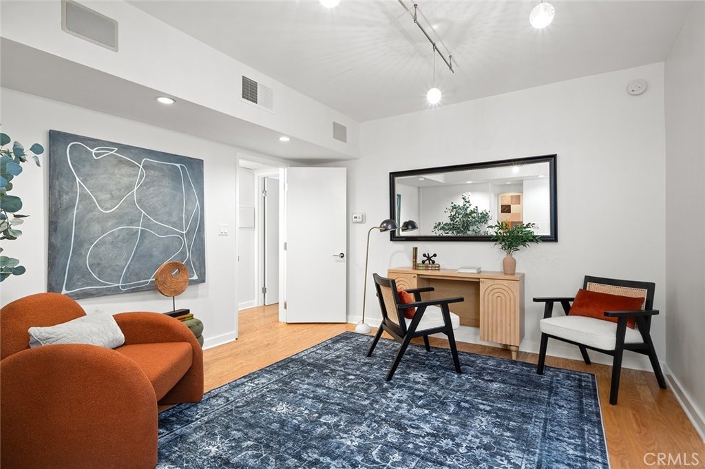 Rare large recently upgraded 1 bedroom + Den and 1.5 bath corner unit at the prestigious resort-style Park Wellington. This spacious unit is only 1 of approximately 15 1BD+Den units in the building with double exposure and large windows which allow sunlight to flood in enhancing the overall ambiance and making it perfect for relaxation or productivity, giving the benefits of a bright environment that not only elevates your mood but also reduces the need for artificial lighting, promoting energy efficiency. Upgraded in 2019 this property features newer hardwood floors, recessed LED lighting throughout, double-pane windows and doors, upgraded kitchen with custom built-ins, quartz countertops, top of the line Kohler fixtures, newer appliances, private balcony, spacious den/office with 1/2 bath and an IN-UNIT washer/dryer. The spacious bedroom features two generous closets, one walk-in with custom built-ins and a master bath with an integrated large porcelain sink vanity and a custom shower. Perfectly located in the heart of Sunset Plaza in West Hollywood, Park Wellington is a full service concierge building with 24-hour security & doorman and unrivaled amenities including a resort style pool and spa with cabanas, city views, tennis court, sauna, a state-of-the-art 24-hour fitness center, and dedicated dog park. The unit comes with a dedicated parking spot and plenty of guest parking within the complex's gated garage. Park Wellington's ideal location, nestled between Sunset Blvd & Santa Monica Blvd, puts you within a mecca of top-rated restaurants, high-end boutiques and an exhilarating nightlife scene. Enjoy being at the center of all that WEHO has to offer while simultaneously being able to retreat to the serene oasis that is Park Wellington, welcome home.