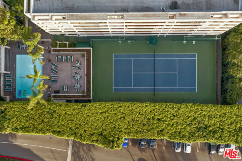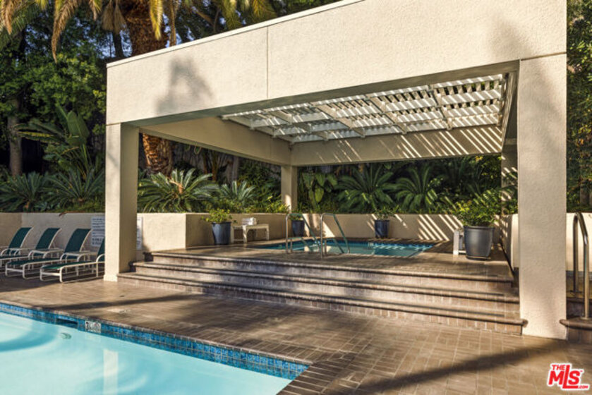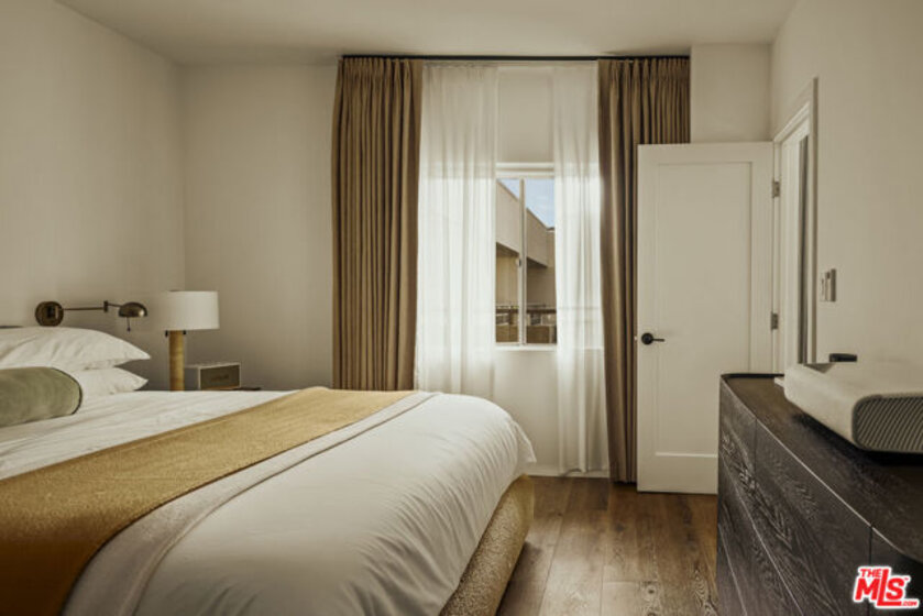 Light-filled and impeccably renovated, this stunning penthouse boasts one of the premier courtyard views at the Park Wellington. Rich wood floors welcome you into a thoughtfully redesigned interior featuring a stylish guest bath with a custom modern vanity and a gourmet chef's kitchen rarely found at this price point. Outfitted with premium Miele appliances including an induction cooktop, convection oven, speed oven, dishwasher, and refrigerator. The space is elevated by a Kohler undermount sink, pull-down faucet, and striking waterfall-edge Dekton countertops. The serene bedroom suite offers custom walk-in closet and a sleek spa-inspired bath with an oversized walk-in shower. Residents enjoy full-service amenities including concierge, resort-style pool, two spas, sauna, fitness center, dog park, tennis court, and remarkably low HOA dues. Ideally located just moments from Trader Joe's, Equinox, SoulCycle, WeHo Bistro, and the premier dining and shopping of Sunset Plaza.