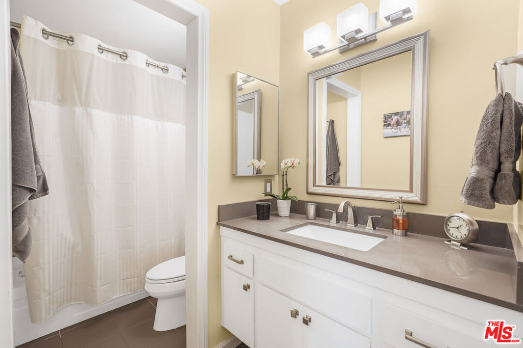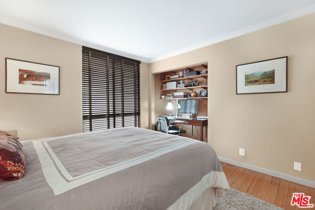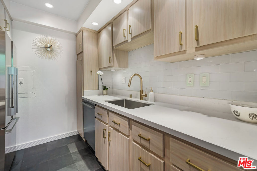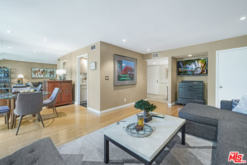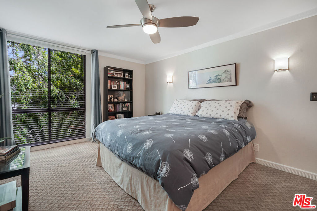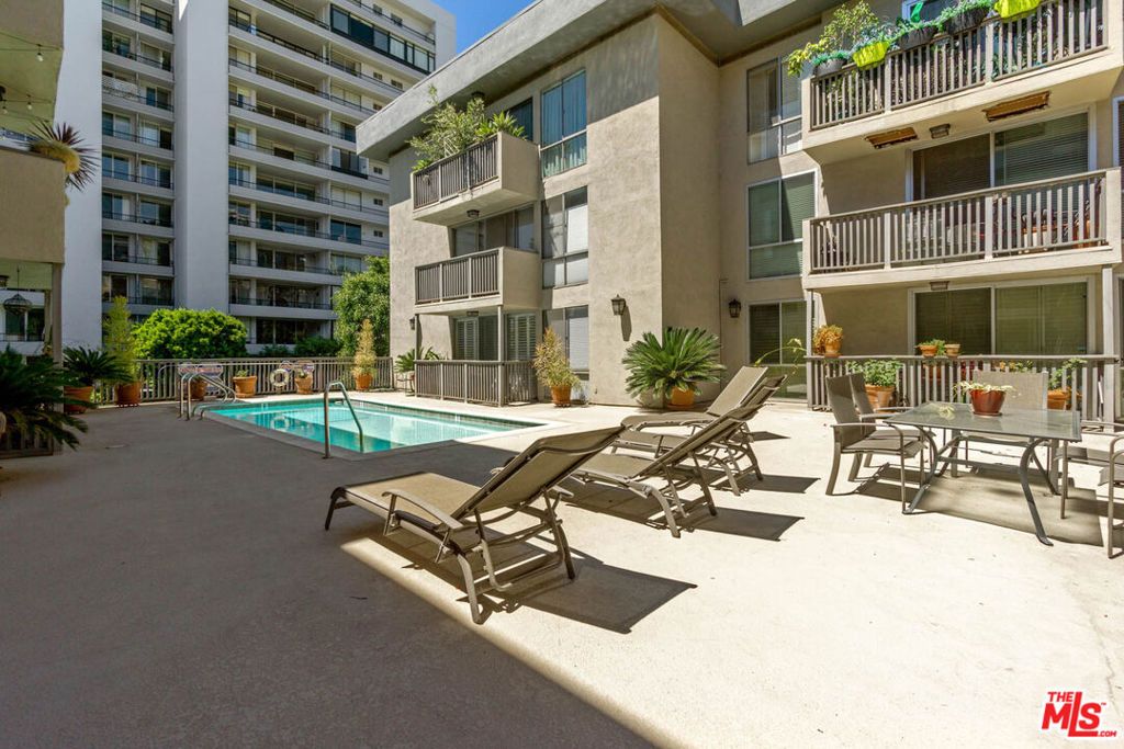 This beautifully remodeled 2BR/2BA condo has a large balcony with tree-top views of the West Hollywood skyline. Located at the back of the building, this corner unit gets morning sunshine from floor-to-ceiling windows in every room and the open floor plan features a gas fireplace in the living room. This home was upgraded with recessed lighting, hardwood floors, and a stylishly renovated kitchen featuring stainless steel appliances. Both bathrooms have also been renovated with designer tile and fixtures. Several large closets offer ample storage space, including a large walk-in closet in the master bedroom and two big closets in the guest bedroom. Two side-by-side parking spaces in the garage are assigned to this home. The low monthly HOA fee includes EQ Insurance, Cable TV and high-speed internet. The building offers a private gym, a sauna and a central courtyard with a sun deck and large refreshing pool. The lobby is currently under renovations for an updated appearance. Located on one of West Hollywood's best blocks, this tree-lined street does not allow through traffic, so the block is quiet and residential while close to restaurants and shopping on the Sunset Strip and Santa Monica Blvd.