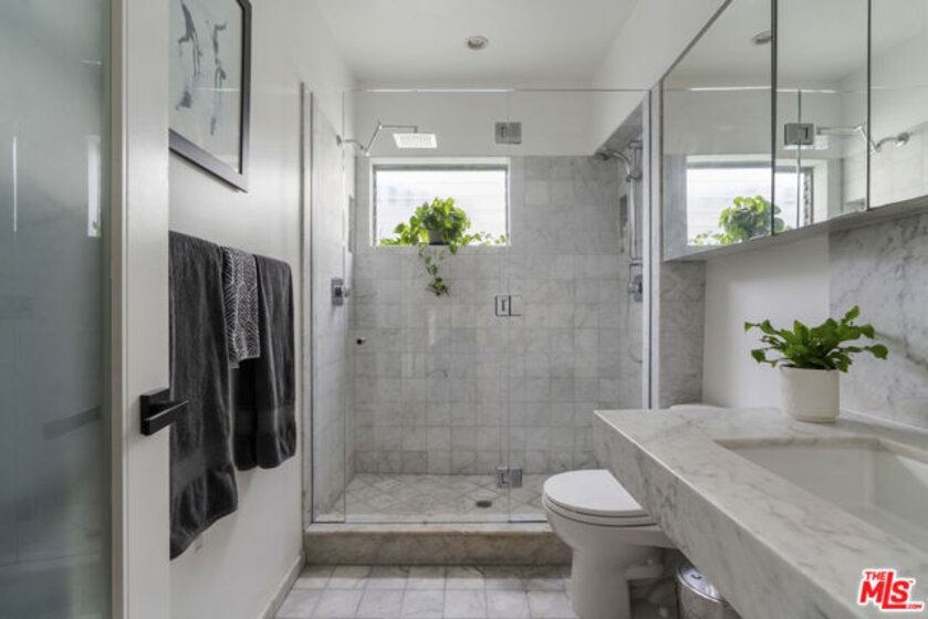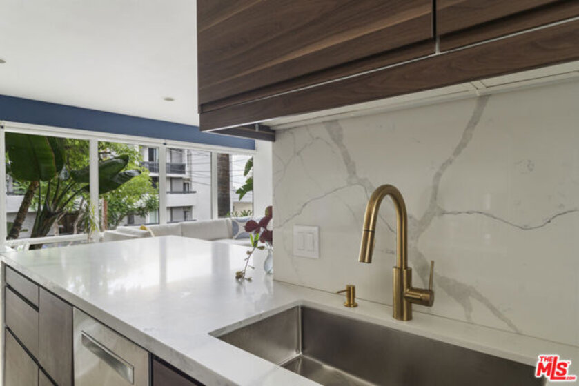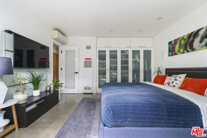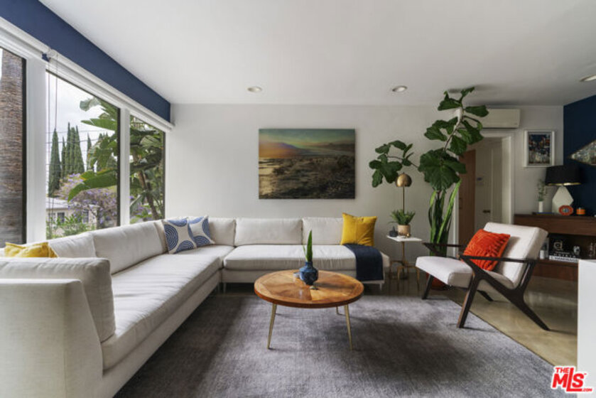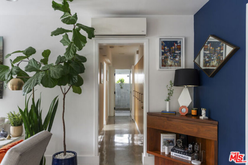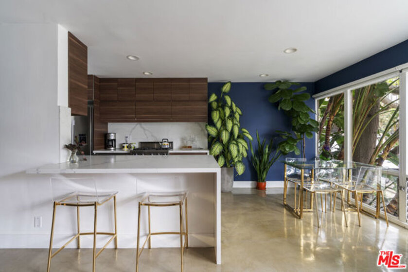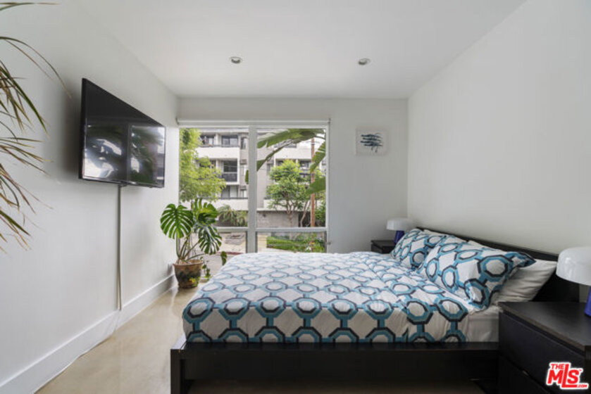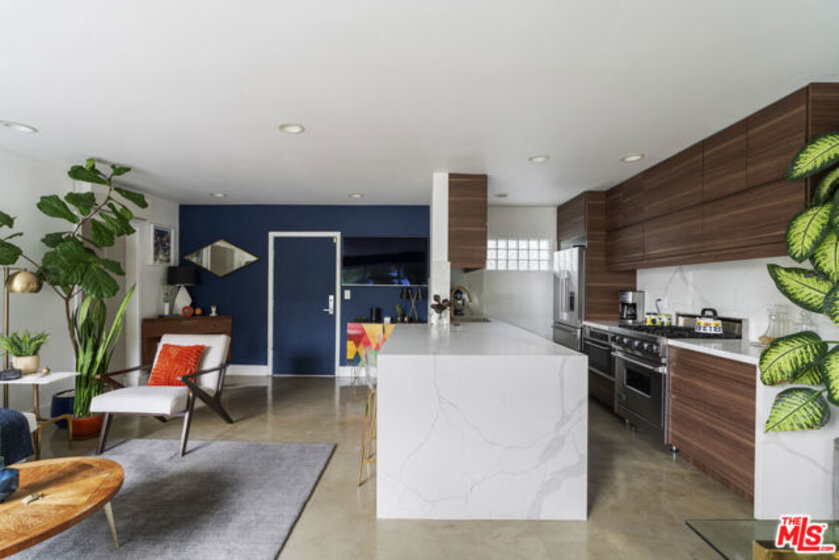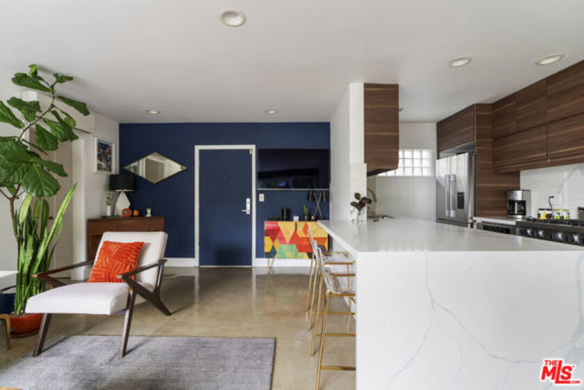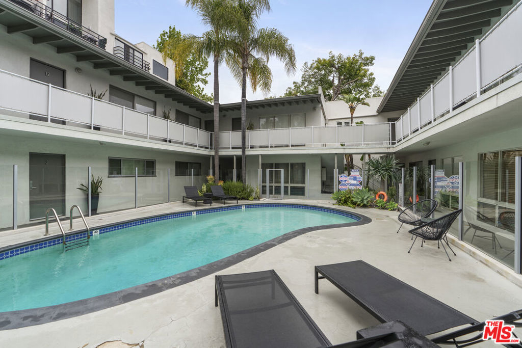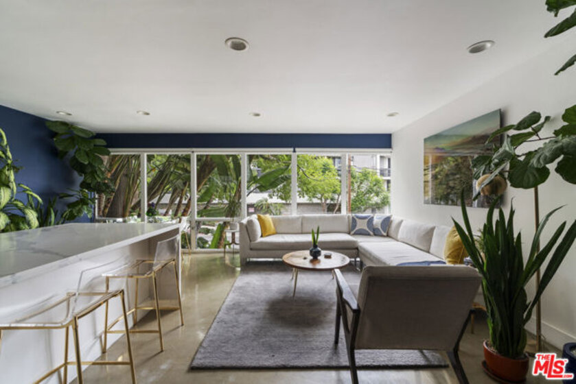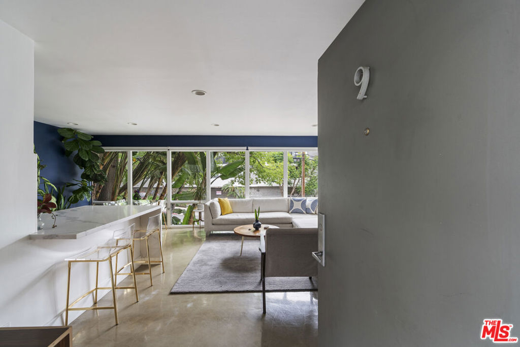 Tucked away on a quiet, tree-lined street just north of the Sunset Strip, this beautifully updated residence offers a rare opportunity to own in one of West Hollywood's most culturally significant mid-century buildings. The building's iconic courtyard pool was immortalized in Peter Getting Out of Nick's Pool by David Hockney - a seminal work that helped define the visual language of California modernism. Residence #9 is the largest unit in the building and features a thoughtfully updated interior that balances modern comfort with architectural character. Polished concrete floors, a renovated kitchen outfitted with high-end appliances, and a light-filled layout create a clean, contemporary feel. Two spacious bedrooms and a marble clad bath round out the interior, with a balcony off the primary bedroom providing space to enjoy the outdoors. Additional highlights include in-unit laundry, an exceptional amount of closet space and storage, secure parking space, and access to the lushly landscaped courtyard pool - the architectural and cultural centerpiece of the property. The HOA is notably well-managed, featuring relatively low monthly dues along with strong reserve funding, offering long-term stability and peace of mind for ownership. Located a block from Sunset Boulevard, the home offers immediate access to West Hollywood's best dining, nightlife, and wellness destinations while maintaining a sense of privacy and retreat. A rare convergence of design, history, and livability.