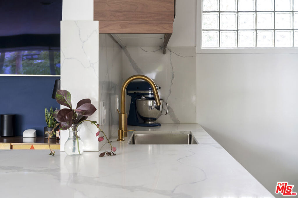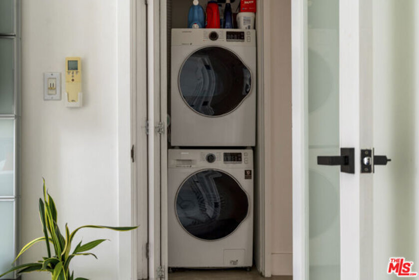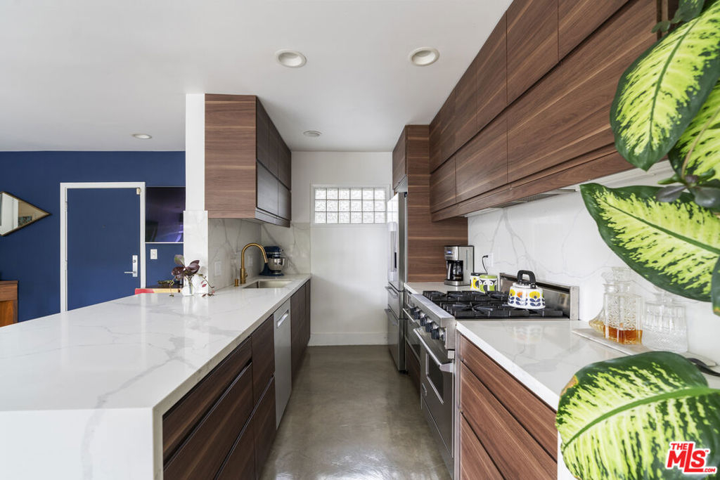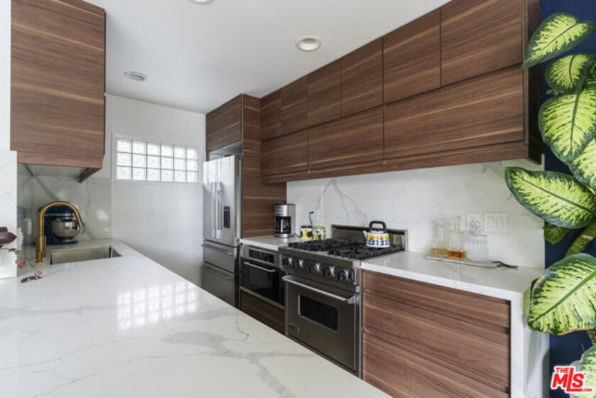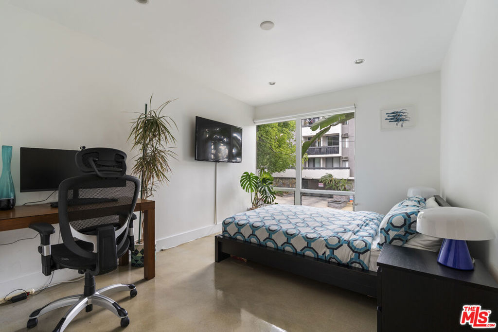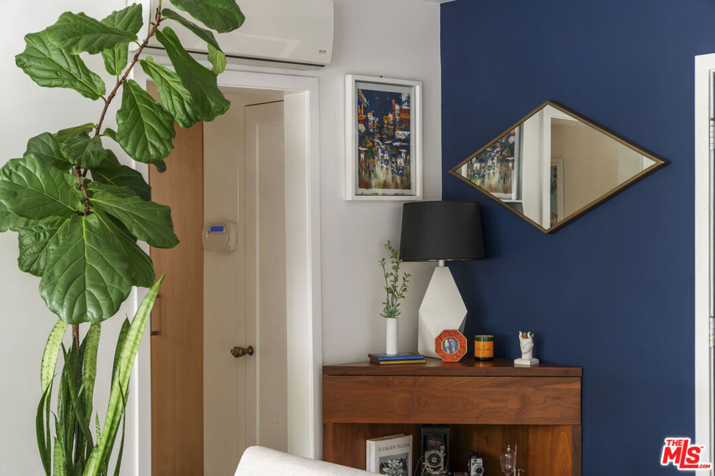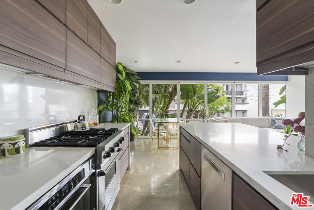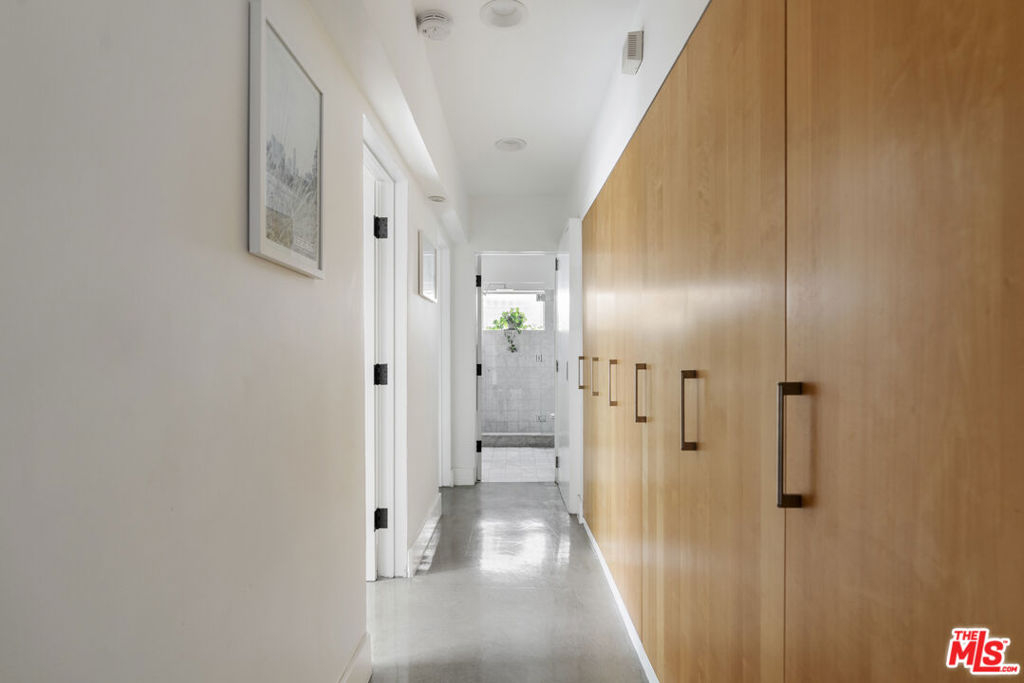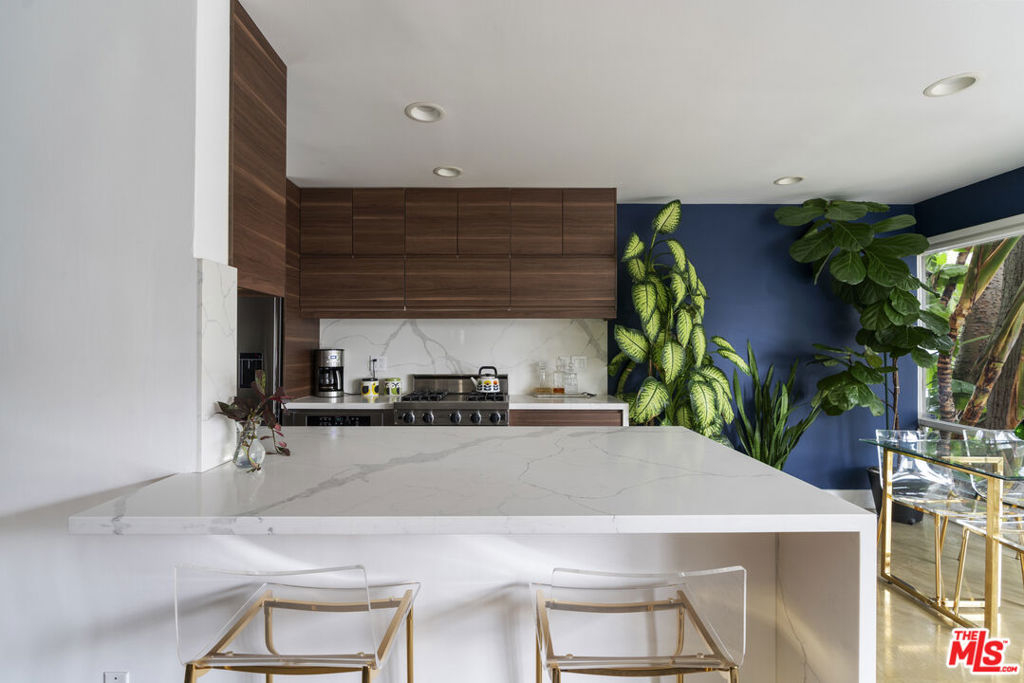 Tucked away on a quiet, tree-lined street just north of the Sunset Strip, this beautifully updated residence offers a rare opportunity to own in one of West Hollywood's most culturally significant mid-century buildings. The building's iconic courtyard pool was immortalized in Peter Getting Out of Nick's Pool by David Hockney - a seminal work that helped define the visual language of California modernism. Residence #9 is the largest unit in the building and features a thoughtfully updated interior that balances modern comfort with architectural character. Polished concrete floors, a renovated kitchen outfitted with high-end appliances, and a light-filled layout create a clean, contemporary feel. Two spacious bedrooms and a marble clad bath round out the interior, with a balcony off the primary bedroom providing space to enjoy the outdoors. Additional highlights include in-unit laundry, an exceptional amount of closet space and storage, secure parking space, and access to the lushly landscaped courtyard pool - the architectural and cultural centerpiece of the property. The HOA is notably well-managed, featuring relatively low monthly dues along with strong reserve funding, offering long-term stability and peace of mind for ownership. Located a block from Sunset Boulevard, the home offers immediate access to West Hollywood's best dining, nightlife, and wellness destinations while maintaining a sense of privacy and retreat. A rare convergence of design, history, and livability.