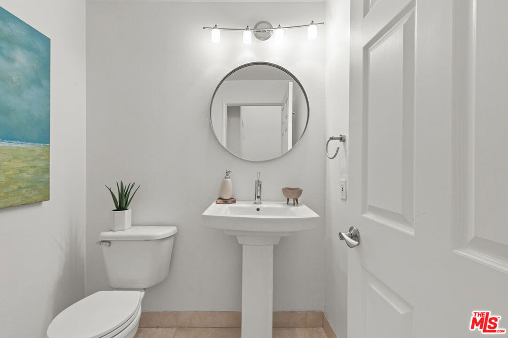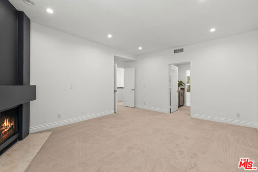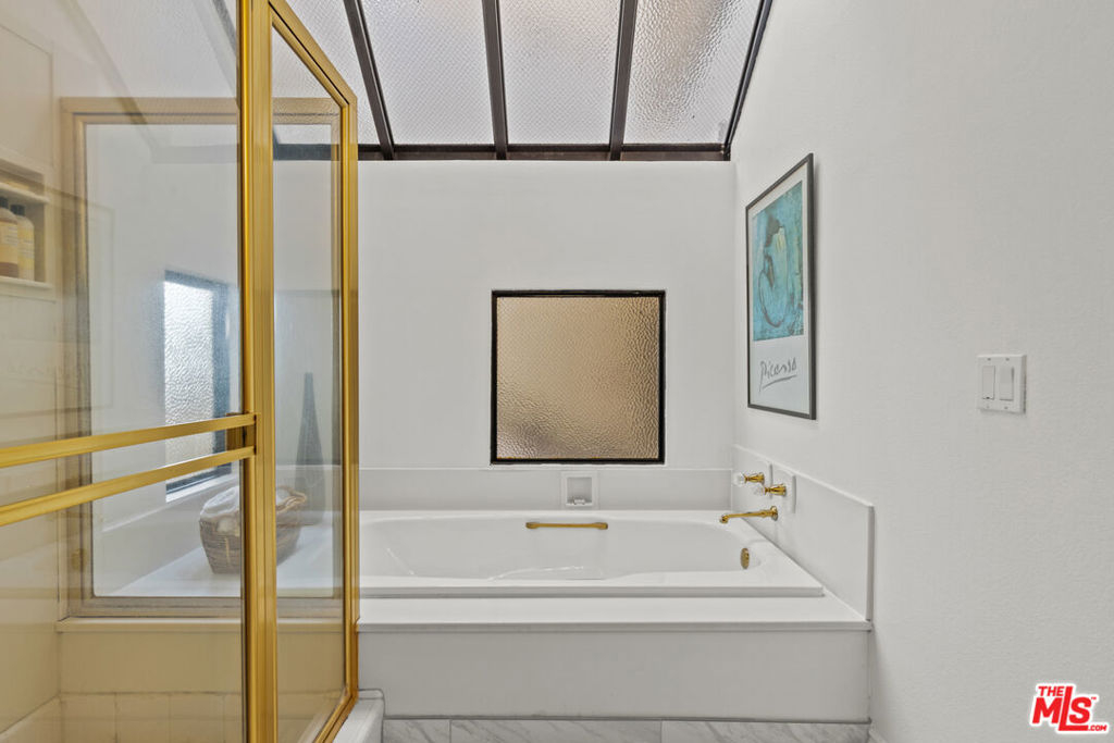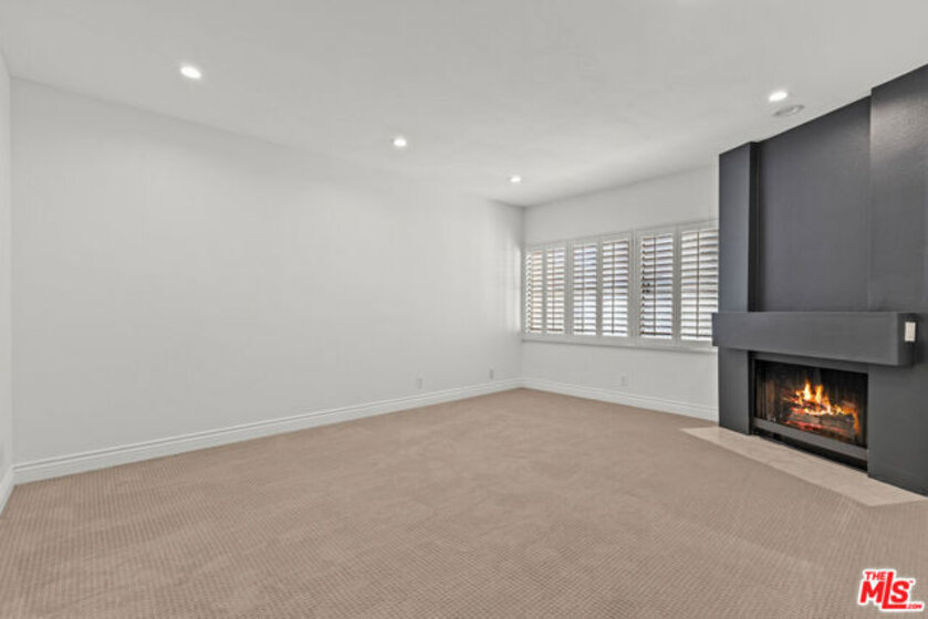 Spacious 2 bed, 2.5 bath townhome-style condo in prime Brentwood location, just minutes away from restaurants, coffee shops and retail on trendy San Vicente Blvd. Located in a quiet corner of this contemporary condominium building, with lovely center courtyard pool surrounded by lush mature landscaping. As you enter you are greeted with the high ceilings and tons of natural light that make this home different from most condominiums. There is a powder room perfectly situated at the entry before you step down into the spacious living room with wood floors, soaring ceilings, romantic fireplace and wet bar, perfect for entertaining. The dining area opens to a patio to capture the cool breeze and is perfectly situated just off the kitchen. The laundry room completes the lower level. The upper level comprises the oversized primary suite with a second fireplace, large walk-in closet, and a spa-like primary bath with dual sinks, walk in shower, separate tub and skylights overhead. The second bedroom, full bathroom and loft area, which can be used as a home office, complete the upper level. Brand new carpets just installed on the upper level. Other building features include controlled access, airy courtyard walkways, 2 single parking spaces, additional storage and 11 guest parking spaces.