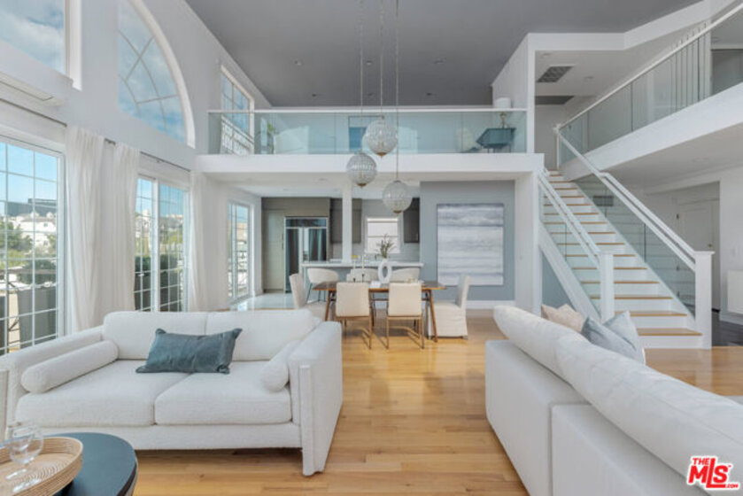This rare and refined two-story New York style penthouse loft offers an effortless blend of creative space, sophistication, and room for entertaining in the heart of Brentwood. With over 3,100 square feet, this 4-bedroom, 3.5-bathroom residence is a spacious family home and an entertainer's dream. Ideally located blocks from the best of Brentwood - including San Vicente's premier shopping and dining, the Brentwood Country Club, top-tier grocery stores, and the beloved Brentwood Farmers Market, this extraordinary penthouse delivers both convenience and comfort in one of LA's most desirable neighborhoods. Soaring ceilings and expansive north-facing windows flood the space with natural light, city views, and mountain views - offering brightness all day long and unforgettable sunsets. The open-concept floor plan features an expansive living area, a formal dining area, and a chef's kitchen. Overlooking the main living space is a spacious second-story loft, ideal as a home office, lounge, or creative area such as a home gym or art studio. The designer kitchen is open-concept, outfitted with custom cabinetry and top-of-the-line appliances, including a Sub-Zero refrigerator, Wolf gas cooktop, double oven, and microwave drawer, along with a hidden dishwasher. All main-level bathrooms have been thoughtfully renovated with high-end finishes. The primary suite offers a generous walk-in closet and a spa-like en-suite bathroom featuring a soaking tub. Three bedrooms are located on the main level, while the fourth bedroom and loft sit upstairs alongside a laundry area with washer/dryer and direct access to the private rooftop deck. This outdoor space features artificial turf, bistro lighting, a gas fire pit, and panoramic views - perfect for sunset gatherings or peaceful mornings in the sun. This exceptional home must be experienced in person to be fully appreciated. For leasing information, please inquire directly.