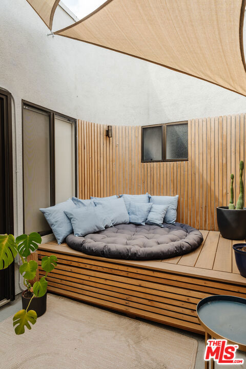 Tucked within one of the few condominium enclaves in the prestigious Bel Air neighborhood, this rare two-level townhome blends architectural style, modern comfort, and serene indoor-outdoor living. One of just seven residences and only sharing one wall with neighbors, the home offers a refined retreat amid a setting typically reserved for grand estates. Upon entry, a light-filled living space welcomes with floor-to-ceiling windows, a sleek gas fireplace, and seamless access to a covered balcony framed by leafy treetops--an idyllic perch for morning coffee or evening repose. The adjacent kitchen makes a striking statement with matte black cabinetry, brushed brass hardware, and quartz countertops, punctuated by Viking double ovens and a dedicated wine fridge. A stylish dining area and a built-in wet bar enhance the lower level, ideal for everything from quiet mornings to lively entertaining. Upstairs, a skylight above the spiral staircase allows radiant natural light to fill the space. A private wood-clad courtyard offers a rare al fresco moment--an intimate outdoor escape just outside the bedroom suites. Both bedrooms are generously scaled and feature en suite baths, providing comfort and privacy. The primary suite is graced with oversized windows and ample storage, while its recently updated bathroom includes a tiled soaking tub beneath a skylight and glass-enclosed shower, creating a spa-like sanctuary. Glass block detailing adds a retro-chic flourish to the upper hall, and a stacked laundry closet offers everyday convenience without compromising design. Ideally located for those who seek privacy without isolation, this Bel Air gem is just minutes from The Getty Center, Brentwood Village, Westwood, and the 405 freeway--pairing tranquil living with effortless access to the best of the Westside.