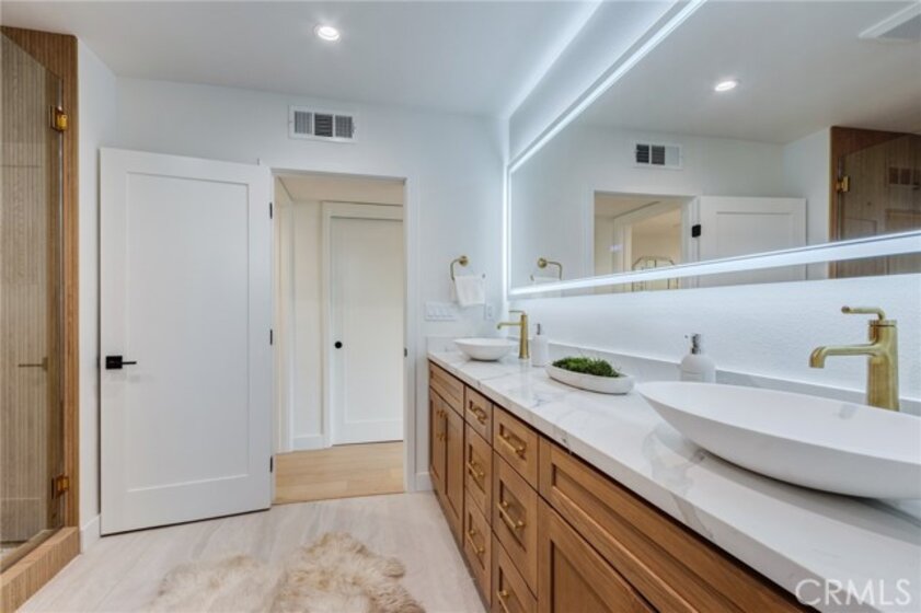 Luxury living meets refined comfort in this Fully Renovated 3 Bedroom Townhome located North of Wilshire Blvd in the heart of prestigious Brentwood! Every inch of this home has been meticulously upgraded to the highest standard. Noteworthy Upgrades Include: BRAND NEW Central AC, NEW Dual Pane Windows Throughout, Recessed Lighting, Fresh Paint, NEW Wood Flooring, NEW Shaker Cabinets, NEW Quartz Countertops with Full Backsplash, Designer Kohler Fixtures in Kitchen & Bathrooms, Pot Filler above the Oversized High End Stainless Steel Cooking Range + Stainless Steel Fridge, Dishwasher & Microwave, ALL INCLUDED! This 3 bed, 3 bath townhome (1 Bed & 1 Bath downstairs) was designed with impeccable detail, featuring an open floor plan, hardwood floors, and designer finishes throughout. The spacious living area with cozy fireplace & elegant wet bar complete with beverage fridge, flows seamlessly between dining room & kitchen, ideal for entertaining. The primary suite offers a truly breathtaking spa-like bath with dual vanities, soaking tub, and oversized glass shower complete with bench & rain shower head! Secondary bedrooms are generous with beautifully updated baths, bedroom 2 upstairs has private entrance from upper level, great for guests. Enjoy the difference of true Townhome living with no neighbor above or below & easy, convenient access from your private parking to the close proximity of your front door. No detail was missed and no expense spared in this high end luxury renovation! All this plus located on a quiet street near Brentwood’s finest shops, dining, schools parks & close by Santa Monica beach — this is refined California living at its best. Seller willing to pay 1st year HOA fees with strong offer