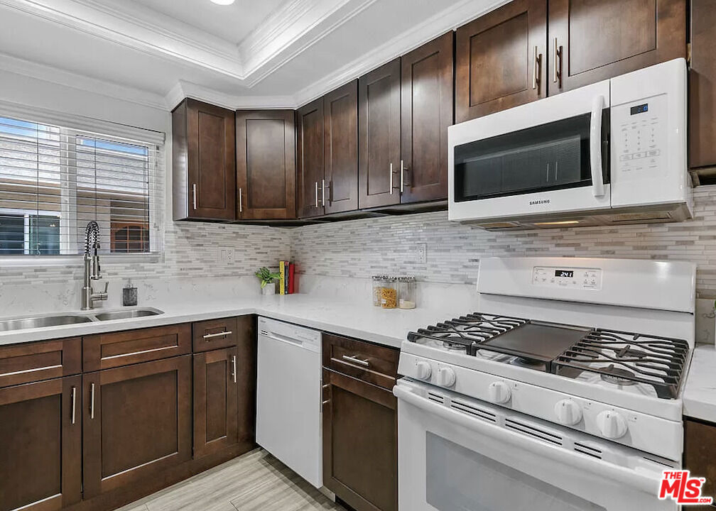 Come see this beautifully updated penthouse unit in Del Rey! This unit features two bedrooms and two bathrooms, an open floor plan, vaulted ceilings, crown molding, updated flooring, and in-unit laundry. The large primary bedroom includes a walk-in closet, ensuite bathroom, vaulted ceiling, and balcony access. The kitchen has modern stainless steel appliances, quartz countertops, and lots of cabinets. This stunning property offers peace of mind with a fully installed SimpliSafe security system, ensuring top-notch protection and convenience. Additional storage is secured and lofted in the unit, and storage closets are in the secured parking area. This unit features gated parking with the added convenience of two reserved tandem spaces, ensuring ample parking for residents. The HOA includes water, trash, building maintenance, and earthquake insurance. This location is unbeatable with easy access to the 405 and 10 freeways, public transportation, LAX, DTLA, and UCLA. Only minutes away from entertaining hot spots in Marina Del Rey, Culver City, and Venice Beach, don't miss your chance to see this beautiful home!