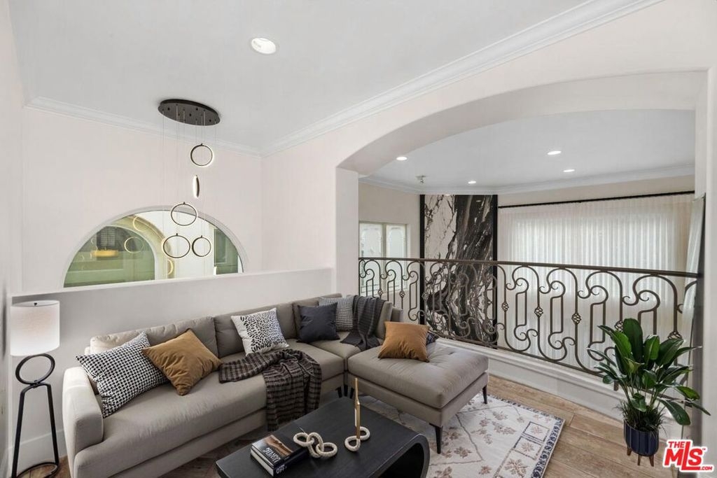 PREMIER FRONT-FACING CORNER RESIDENCE IN BRENTWOOD'S MAYFIELD GARDENS. Discover Brentwood living at its best in Mayfield Gardens, an intimate Mediterranean-inspired community of just eight homes behind a private gated entry. This rare, front-facing corner townhome is the largest and best unit in the complex, offering expansive interiors and abundant natural light throughout the day. Enter through a lush courtyard with mature landscaping and a tranquil fountain that sets the tone for refined living. Inside, soaring ceilings, polished marble floors, and a grand fireplace anchor the formal living room, which flows seamlessly into a dining area ideal for entertaining or relaxed evenings. The chef's kitchen boasts Viking and Sub-Zero appliances, marble countertops, and a large center island designed for both everyday meals and gatherings. A dedicated office with custom built-ins adds versatility, also suitable as a den, library or media room. Upstairs, the primary suite is a private retreat with a walk-in closet, dressing area, and spa-style bath with soaking tub, oversized shower, and dual vanities. Three additional en-suite bedrooms provide flexibility for family, guests, or creative space. A private rooftop deck crowns the home with sweeping city and mountain views, ideal for morning coffee, sunset gatherings, or weekend barbecues. Direct entry from a private two-car garage and an in-unit elevator ensure ease and convenience across all levels. Perfectly positioned between Montana Avenue and Wilshire Boulevard, this light-filled Brentwood residence is moments from boutiques, cafes, and the iconic Country Mart. This is a rare chance to own the largest, most desirable residence in a highly sought-after gated community.
