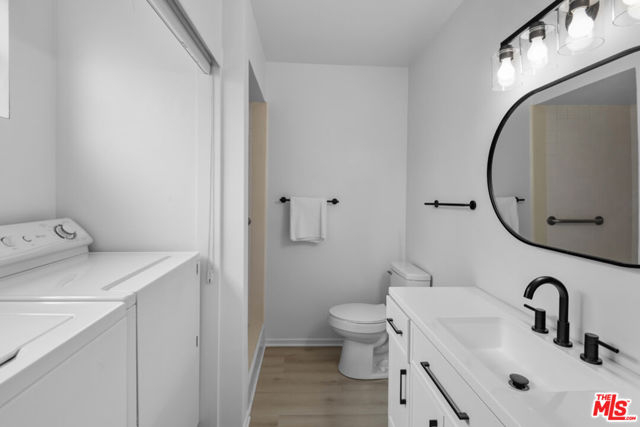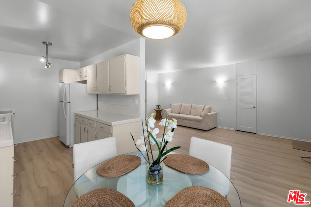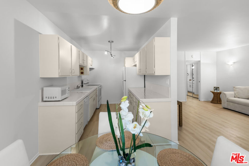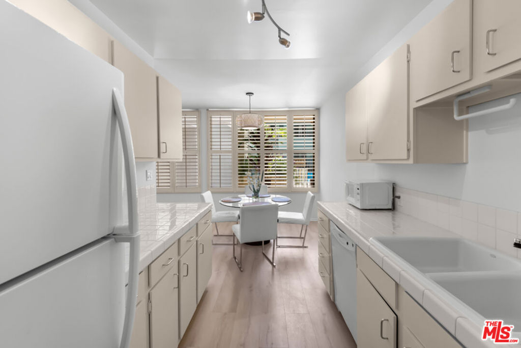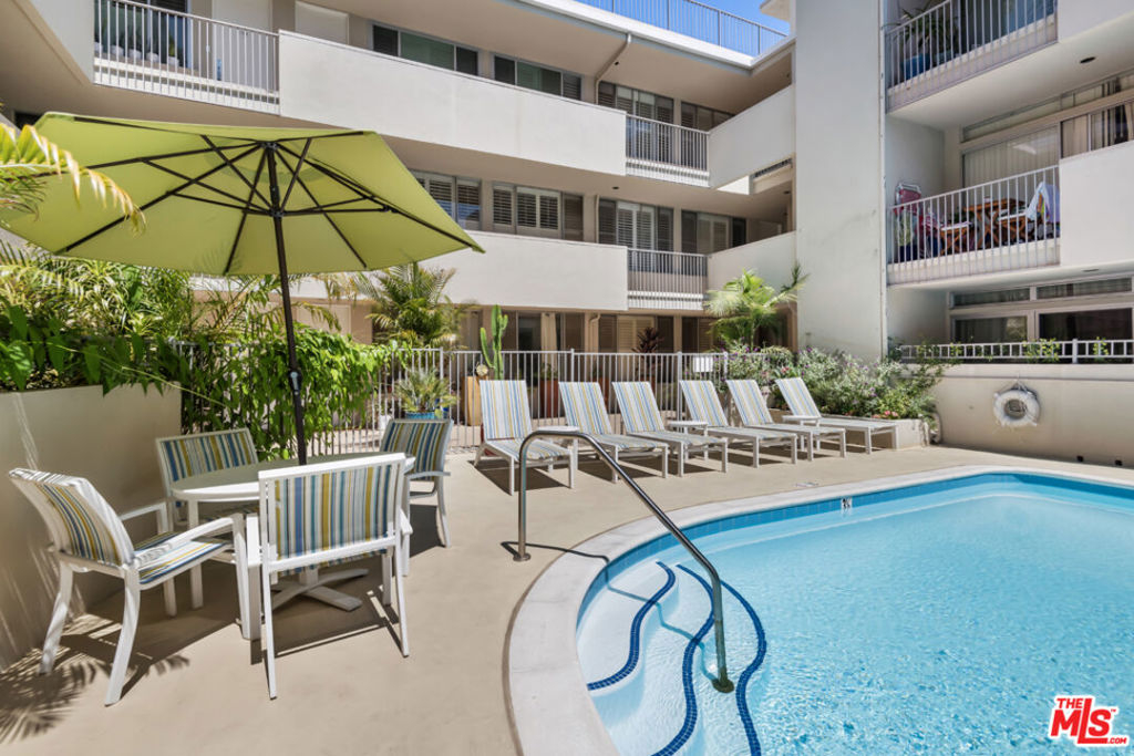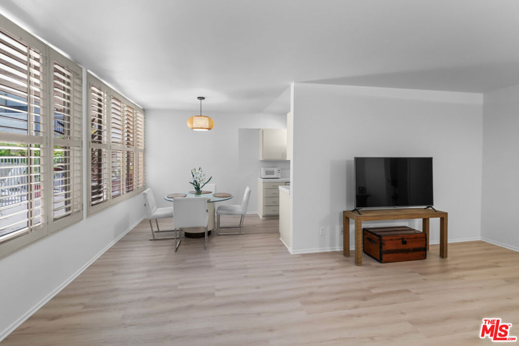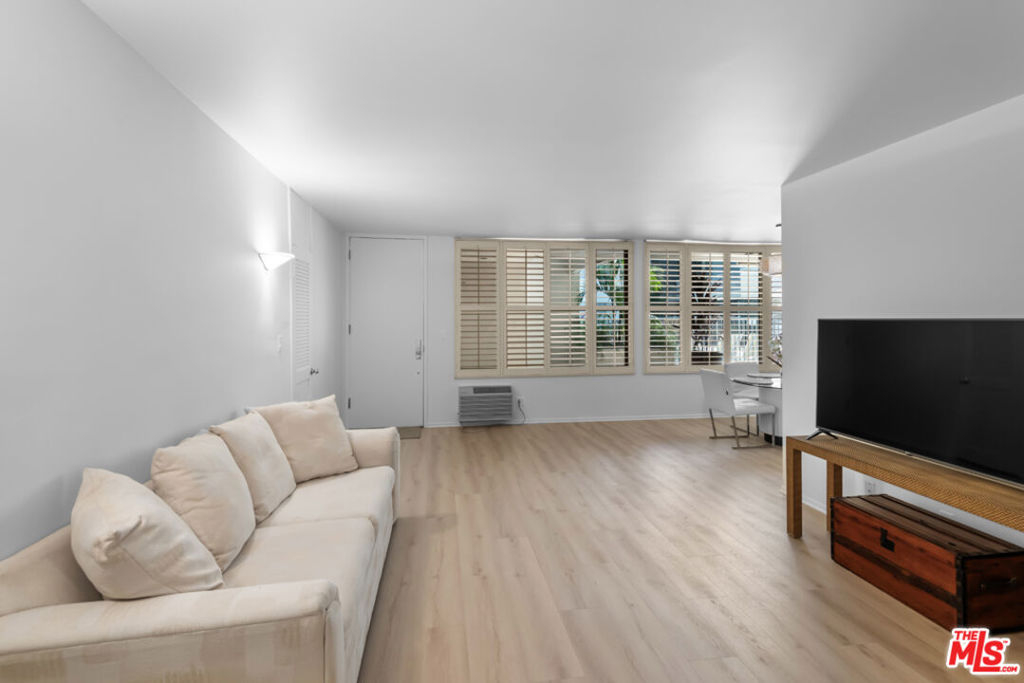 Indulge in quintessential L.A. resort-style living in this pristine, retro-inspired residence located in the heart of West Hollywood, just minutes from the iconic Sunset Strip. Travel back in time as you enter through the stylish and secure mid-century lobby and head up to your light and bright, open floor plan unit featuring several desirable amenities including plantation shutters, convenient entryway closet, designer fixtures, guest bathroom, and wide plank flooring throughout. The pristine kitchen offers plenty of countertop space for the culinary adventurer as well as ample cabinetry for storage, and also includes a separate dining area, perfect for guests and mellow date-nights. Unwind in the spacious living area with picture windows, or relax in the large primary suite with laundry room, two massive reach-in closets, cultured marble vanity, and walk-in shower. Spend sun-soaked L.A. days lounging poolside with a cool beverage in hand, or hit the sidewalk and head up to Sunset or Santa Monica Blvd. for endless fine dining, entertainment, and retail right outside your door. Situated in one of L.A.'s most desirable neighborhoods, and minutes from live music venues, beaches, Beverly Hills, the Hollywood Bowl, Whole Foods, and SoHo House, this beautiful residence offers the prime Los Angeles lifestyle in one of the most sought-after regions in the city.