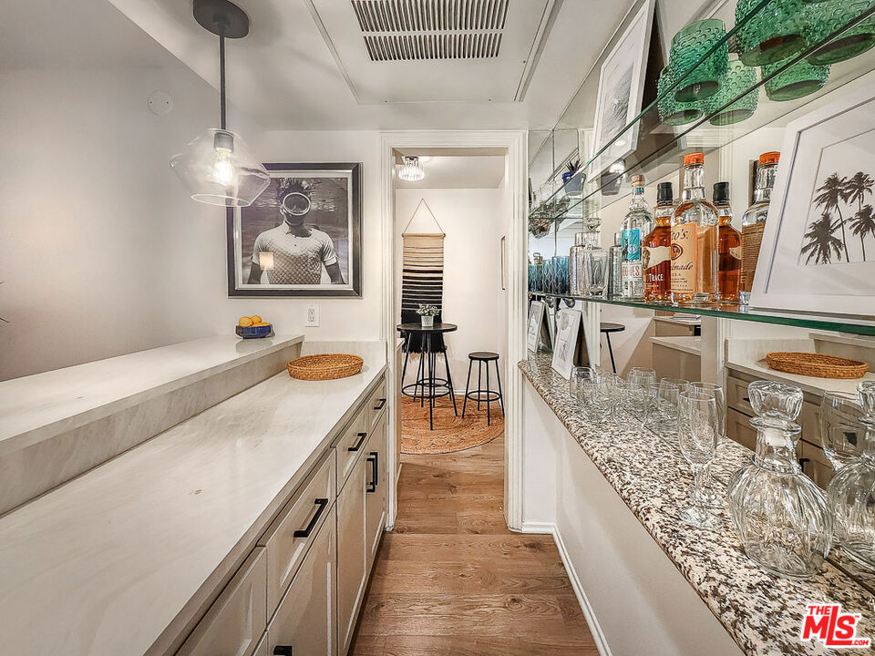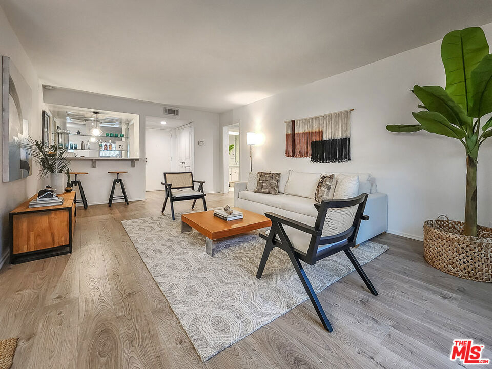 Thoughtfully remodeled residence at "Villa Las Brisas", located in heart of West Hollywood. Step inside this bright, flowing, open floor plan with over 850 square feet of luxury living space. Unwind in the spacious living room that features a bar area perfect for happy hour gatherings. Modern galley style kitchen complete with Cambria Quartz countertops, tile backsplash, top of the line appliances and cozy breakfast area. Conveniently located adjacent to the kitchen is the spacious dining area which, along with the living room, leads to sliding glass doors to a private balcony perfect for enjoying your morning coffee. Primary bedroom suite with walk-in cedar closet and custom window treatments. Sumptuous bathroom with marble countertops and backsplash, double sinks and separate spa tub and oversized shower. Other features include vinyl plank flooring throughout, fresh paint and plenty of closet space. Enjoy warm summer nights at the Lania style pool and BBQ areas. Other building amenities include fitness center, storage and secured underground parking. Low HOA dues include Spectrum cable + HBO and Showtime, water, trash/recycling, Hi-speed internet and EQ insurance! Located on a beautiful tree lined street with close proximity to trendy restaurants, cafes, Gelson's market, nightlife as well as to A+ destinations such as Soho House and Equinox.