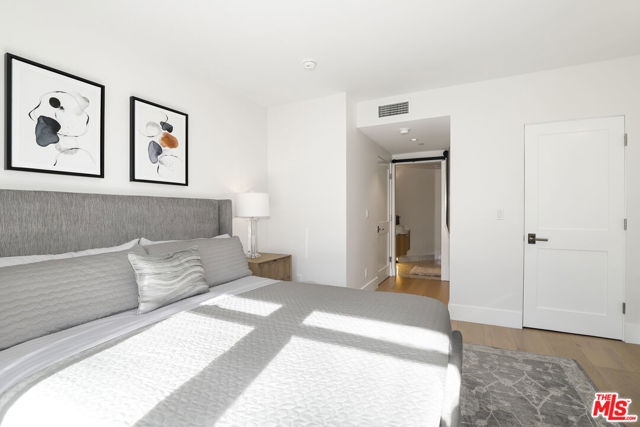 An extraordinary residence in the heart of West Hollywood, this front-facing corner home redefines modern luxury. Exquisitely reimagined with the finest finishes, the 2-bedroom, 2.5-bath floor plan is bathed in natural light and framed by wide-plank wood floors, creating a seamless blend of sophistication and comfort. The grand living room, anchored by a sleek fireplace, opens to an expansive balcony, setting the stage for effortless indoor-outdoor living. A culinary masterpiece, the kitchen showcases Miele appliances, imported Italian marble countertops, integrated refrigeration, and bespoke custom cabinetry a space designed for both everyday living and entertaining at the highest level. The adjacent dining area, with its own private balcony, extends the home's sense of refinement. The primary suite is a sanctuary unto itself, featuring a custom-designed walk-in closet and a spa-inspired en suite bath with dual vanities, a soaking tub, and a glass-enclosed shower. The secondary bedroom offers its own private en suite retreat, perfect for guests or an elegant home office. Additional luxuries include an in-unit laundry, two secure parking spaces, and access to a spectacular rooftop deck with sweeping panoramic views of the city skyline. Just moments from the most coveted dining, boutiques, and nightlife West Hollywood has to offer, this one-of-a-kind residence epitomizes timeless elegance and contemporary sophistication.
