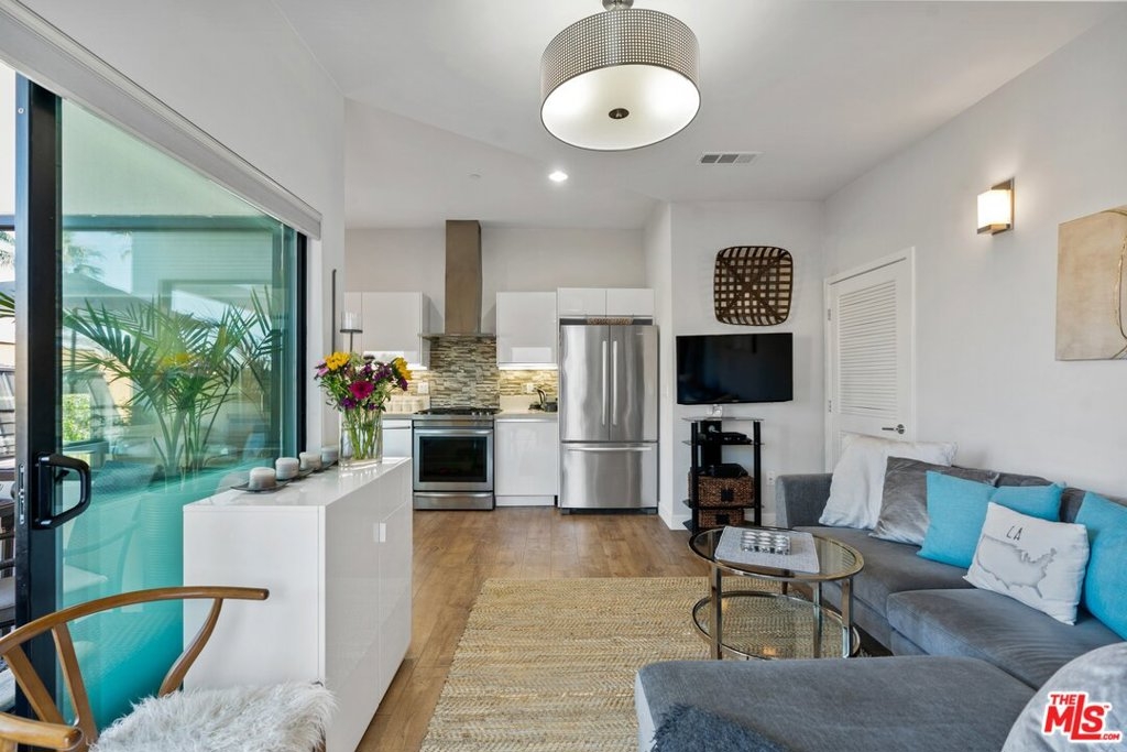 If modern, sleek, European design appeals to your senses, you will fall in love with the look & feel of this beautiful condominium. Situated in the prime location of the Sunset Strip hillside, award winning designer Whitney Sander has created an eye catching building with ultra-modern style. Large open plan kitchen features state of the art stainless steel appliances & eat in dining area. This connects to the main living space which is great for entertaining guests & to enjoy the quintessential California lifestyle. Tall ceilings add to the feel of spaciousness in the unit. An added bonus is a covered patio which extends as an extra outdoor living room with fantastic views, simply divine! With a walk score of 78, you have the very best of trendy eateries and shopping at your doorstep. The convenience of a washer/dryer inside unit & low HOA fees, this is a great place to call home. Separate entry & no common walls, community parking garage offers extra storage & parking for one car, additional guest parking spots available. An extra feature is a beautiful Zen Garden to catch a breath of fresh air and admire the beauty of the surrounding trees. N. of Sunset tucked into the hillside, offers a serene living environment, only 7 units in the complex creates a feeling of ultimate privacy & quiet relaxation. Come take a look, you won't be disappointed!