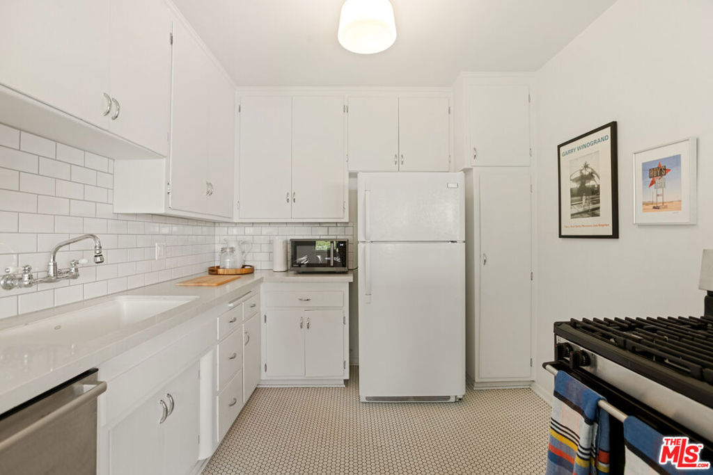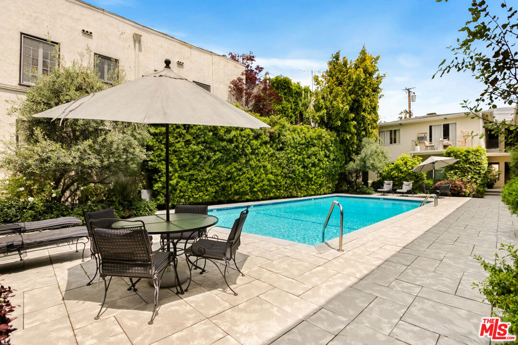 Step into the charm of classic 1950s West Hollywood living in this beautifully preserved courtyard oasis. Positioned on a quiet, tree-lined street, this intimate low-rise community offers a serene escape with a sparkling heated pool, lush landscaping, and inviting outdoor loungesyour private retreat in the heart of the city. This bright and airy walk up second level top-floor condo welcomes you with a spacious living area filled with natural light, elegant crown molding, and vintage character throughout. A flexible layout offers room for a home office area, while rich hardwood floors flow seamlessly into a tranquil bedroom with generous closet space and a brand new wall AC unit. The bathroom evokes timeless appeal with both a soaking tub and separate tiled shower. A charming kitchen and dining area make entertaining easy, while in-unit laundry may be added for modern convenience. Enjoy walk-down secure gated parking with overhead storage, plus on-site community laundry. Moments from Melrose, Santa Monica Blvd, and all that West Hollywood has to offer, this home combines mid-century warmth with everyday practicality a rare find in an unbeatable location.