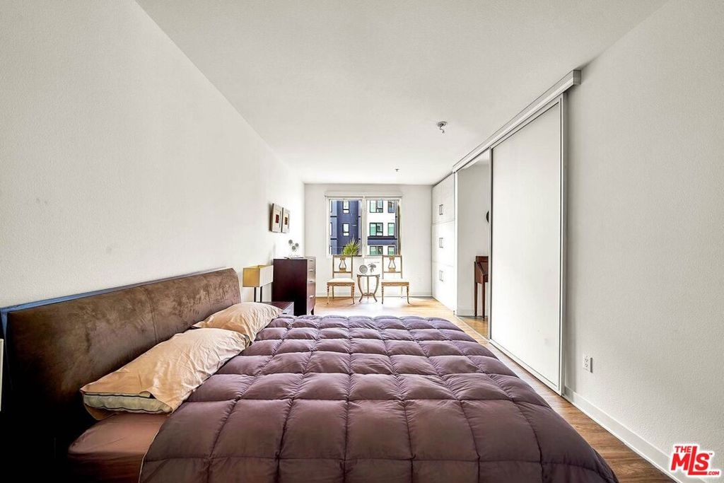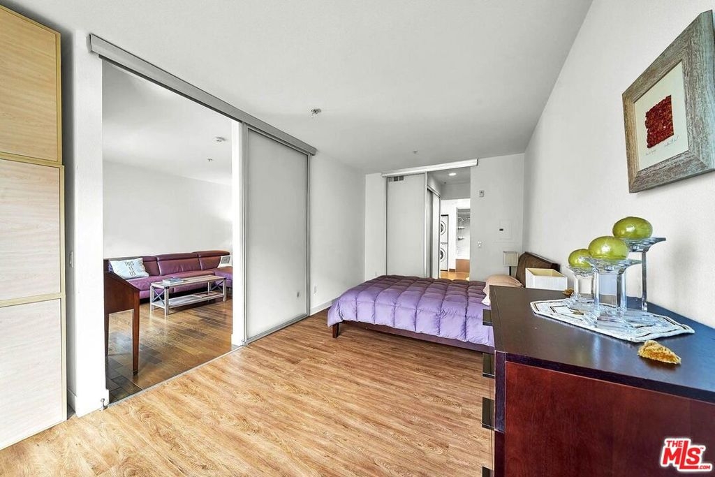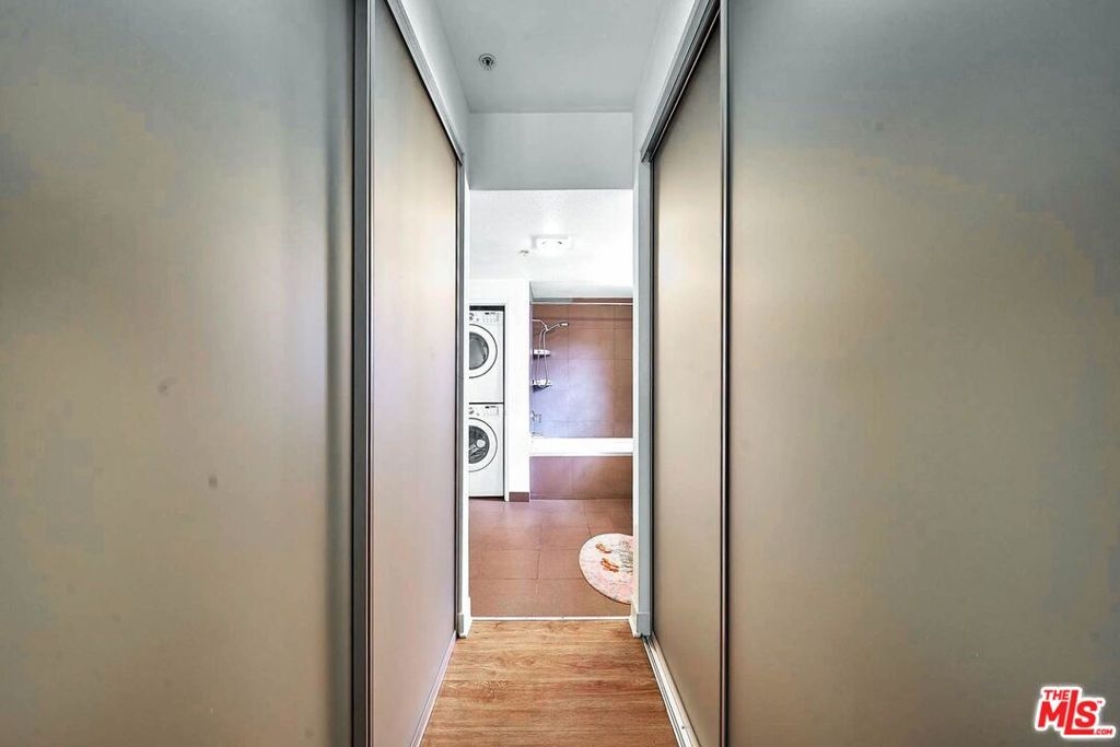 .VERY PRIVATE AND CONVENIENT NEXT TO ELEVATOR AND TRASH CHUTE ROOM, AND PRIVATE ENTRANCE SPACE, UNIT IS 1 BED 1BATH, SOUTH EAST CORNER UNIT THOUGHTFULLY DESIGNED OPEN FLOOR PLAN RICH DARK HARDWOOD FLOOR, SS APPLIANCES, WASH AND DRYER, FROSTED GLASS BARN DOORS AND WITH WINDOW SHADES SWIMMING POOL AND SPA, GYM WITH SAUNA YOGA STUDIO, 24-HOUR ATTENDANT SECURITY, GATED PARKING TWO CAR PARKING SPACES INCLUDED.