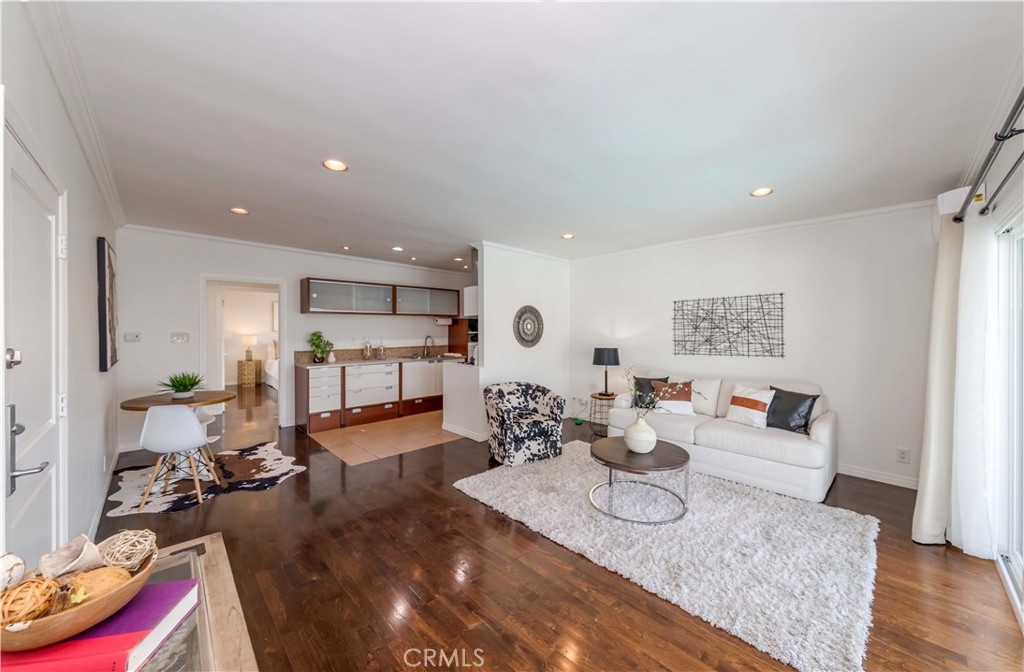 Enjoy the gorgeous city views of Hollywood Hills from your new home! This private, two bedrooms, two baths, top floor, end unit condo has no common walls. Bathrooms have been remodeled and updated with quartz sinks, marble tile tub, and an enclosed glass shower. Unit overlooks the pool and is bright with lots of natural sunlight. It has an open layout with hardwood floors, crown molding, and recessed lighting throughout the home. Bedrooms are spacious with plenty of closet space. Parking garage is gated and comes with two designated spots and a storage area. Amenities of HOA includes heated pool and an on-site laundry. Don't miss out on the opportunity to make this Harper Regency condo your new home, in the heart of the Sunset Strip with nearby trendy cafes, restaurants, shopping, entertainment!