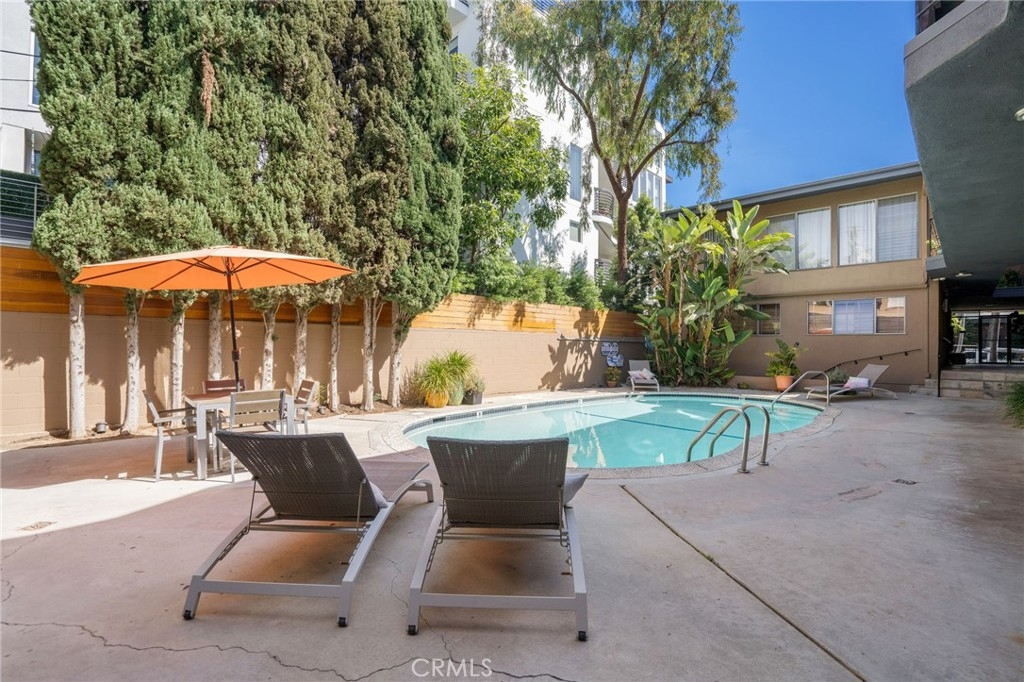 Enjoy living at the Historical “Lawford Building”. This stylish upper level, one-bed, one-bath residence features loads of natural light from the dining and living area. The unit has been recently painted, with restored kitchen cabinets, and an upgraded bathroom with shower and tub. This unit includes washer/dryer hookups and a machine that does the washing and drying for you in a compact size. The flooring is made of hardwood-plywood birch four-foot by four-foot squares. There is a common area laundry room with bike storage. Courtyard-style common area with a relaxing pool and lounge chairs. Pet-friendly building on tree-lined Havenhurst Drive. Parking is secured with assigned spots and additional storage for every unit. The HOA fee includes Trash, water, sewer, earthquake insurance. This building is minutes away from the famous Sunset Strip and popular Santa Monica Blvd.