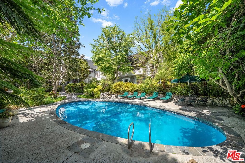 Old-world charm meets modern convenience in this beautifully detailed two-bedroom, two-bath home overlooking a sparkling pool and exceptionally lush garden courtyard in the heart of West Hollywood. A rare opportunity to own in the coveted Chateau Brittany, one of the area's most enchanting communities, known for its remarkably landscaped grounds filled with mature greenery, blooming roses, and peaceful outdoor spaces that create a warm and welcoming, resort-like atmosphere rarely found in condo living. Tucked behind secure gates, the property opens to a storybook courtyard featuring a pool, spa, and tranquil stream with waterfall, offering a serene escape in the middle of the city. Inside, the home is filled with character and natural light, with bay windows overlooking the pool and gardens, rich hardwood floors, elegant moldings, and a fireplace that anchors the living room. A formal dining room provides a beautiful space for entertaining, while the thoughtful layout offers comfortable flow for everyday living. Both bedrooms are generously sized with ample closet space, including a spacious primary suite with an en-suite bathroom. The kitchen connects easily to the dining room, and in-unit laundry adds everyday convenience. Additional storage outside the home provides valuable extra space.Side-by-side parking, secure buzz-in access, and security camera monitoring offer added comfort and peace of mind. Ideally located in the heart of West Hollywood, just moments from dining, shopping, and nightlife, yet quietly tucked away behind lush gardens and gates, this special home offers the perfect blend of charm, privacy, and convenience.