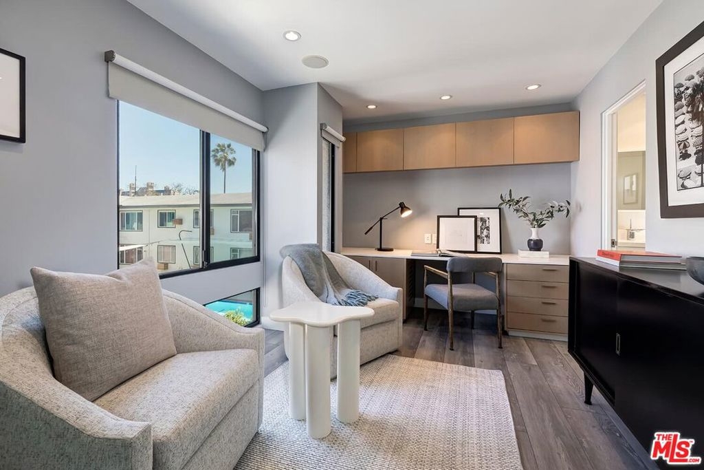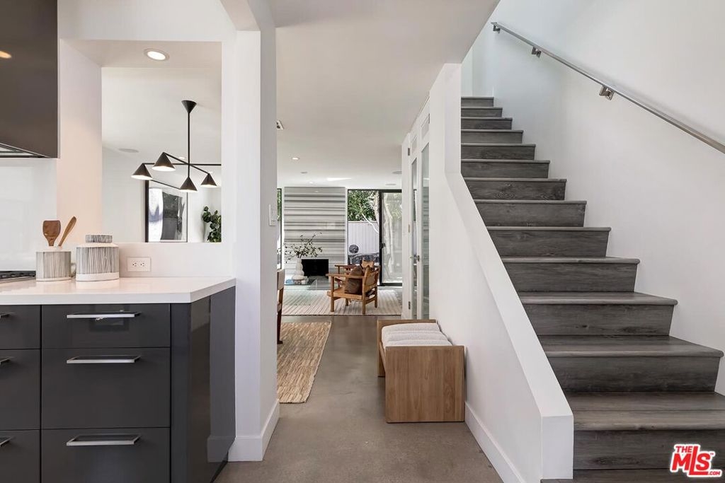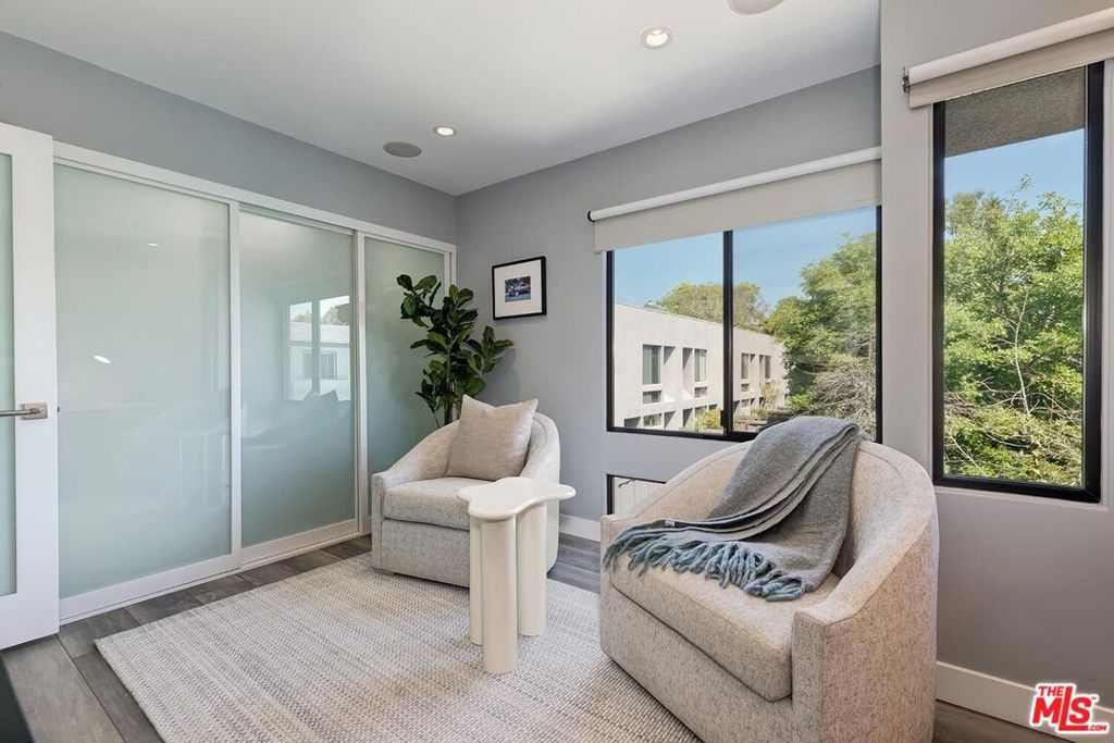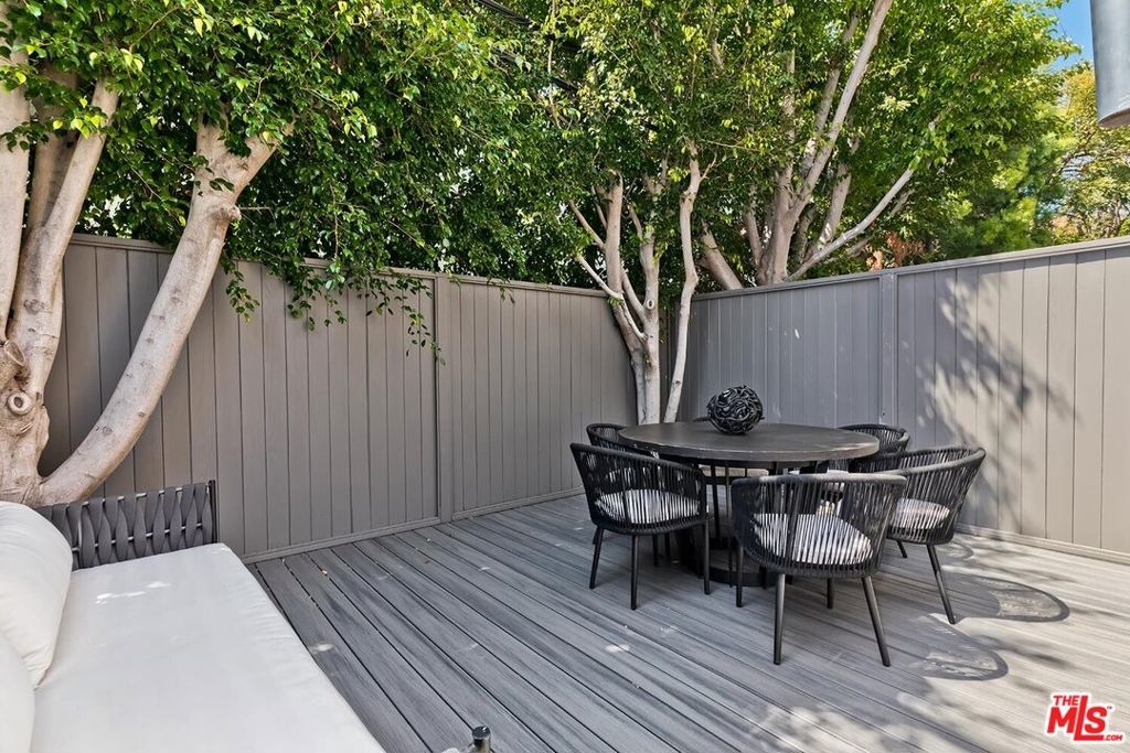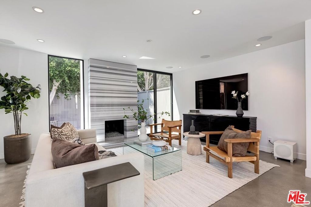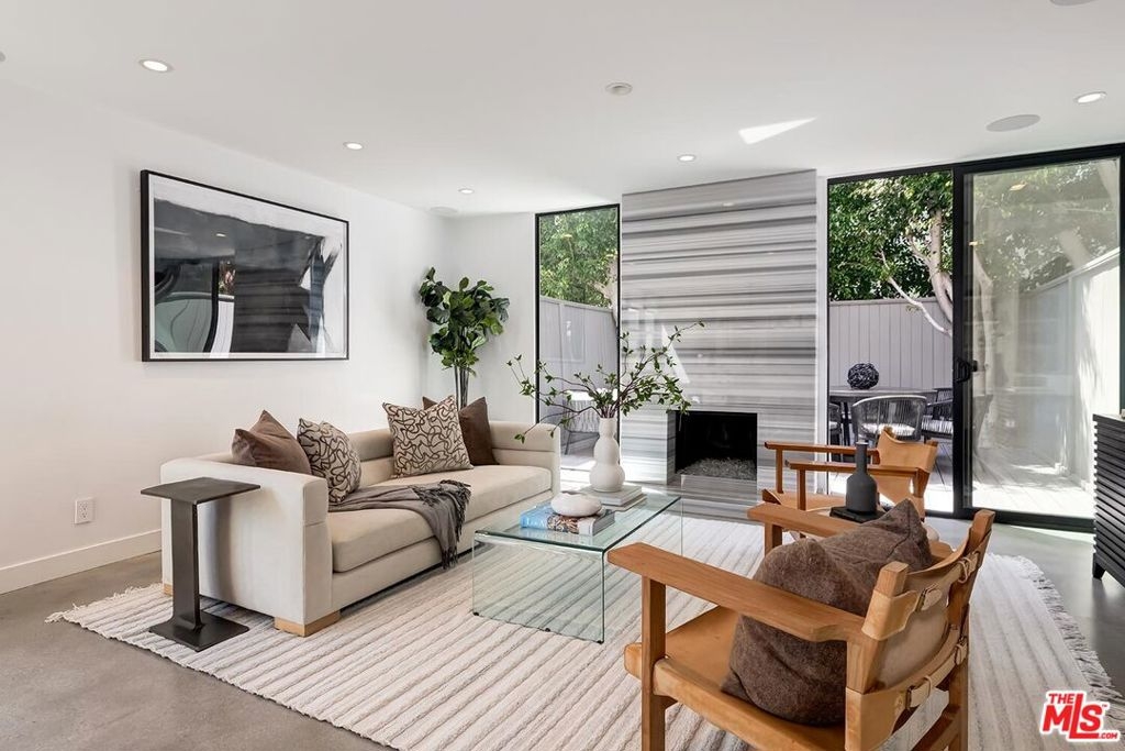 Stunning Architectural Townhome in Highly Sought-After Boutique Building. End unit with approx. 500 sq ft of private outdoor space as well as a private 2 car garage make this a rare find! Gated courtyard entry with expansive patio welcomes you to this spacious home filled with natural light. The unit has been highly upgraded beyond one's expectations including concrete flooring, recessed lighting, CAT 6 network cabling and AV wiring throughout, full size washer & dryer, electric skylight and upgraded Milgard windows and doors. Living room and dining area open to second large patio with TREX decking. The open chef's kitchen has stainless steel appliances, custom cabinetry and quartz countertops. Primary suite with fireplace, custom built in closets, and updated bathroom with dual sinks. Only 10 townhomes in this special complex proximate to the best of West Hollywood.