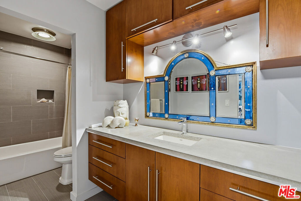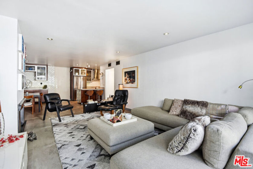 Bright and spacious 2-bedroom + 2-bath residence in the heart of West Hollywood. This open living space has great flow that connects the kitchen, dining area and expansive living room, creating a comfortable layout for both everyday living and entertaining. Recessed lighting and large-format polished concrete-style flooring carry throughout, adding a clean, modern feel. A generous living room with fireplace opens to a private balcony, creating an easy indoor-outdoor connection. The updated kitchen features stainless steel appliances, quartz countertops, sleek tile backsplash and ample cabinetry with additional bar seating. A built-in bar area with a wine fridge and secondary sink adds convenience and is ideal for entertaining. Both bedrooms are well-proportioned with great natural light and ample closet space, including a primary suite with direct access to a remodeled bathroom with dual sinks and a walk-in shower. Additional features include generous storage, modern finishes throughout and a well-maintained building with lush landscaping and pool amenities. Ideally located just off the Sunset Strip with close proximity to LA's best dining, shopping and nightlife.