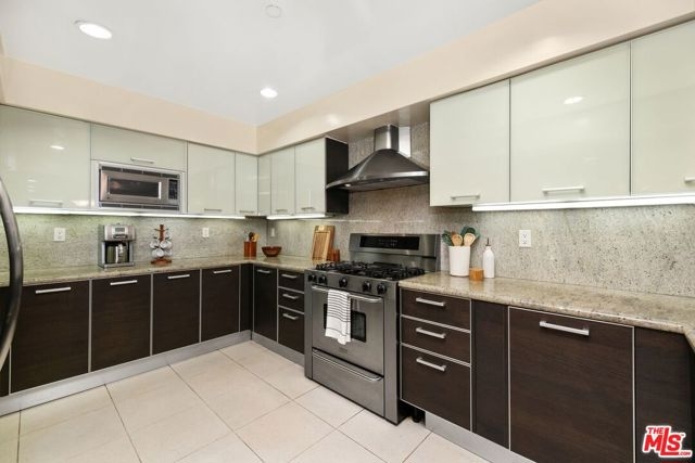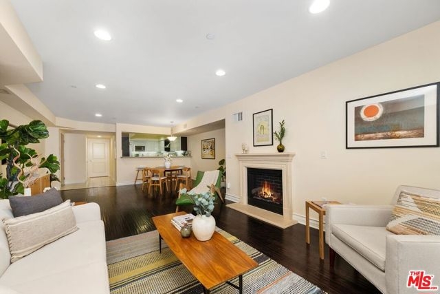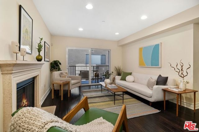 This corner unit spotlights a vast cook's kitchen with abundant counters and cabinetry, and extends effortlessly via a breakfast bar, to your oversized dining area. The living room features an electric stone fireplace and double-paned sliding glass doors that lead to your roomy balcony. Stealthily tucked down the hallway are a handy pantry, laundry closet with new washer/dryer, and guest bath. Separated from the living areas by a center hall, you'll find two comfortable side-by-side bedrooms, both with large closets, a full bath, and a goodly linen closet to keep all of your necessities at hand while out of sight. The fully independent Primary suite highlights include a spa-like bathroom with an immense stone shower, separate soaking tub, and double vanity. The walkway to the bedroom is lined with storage and leads to a sizeable custom wardrobe. The airy bedroom features double-paned sliders onto a Juliet balcony with eastern exposure. No "living space" shares a wall with a neighboring unit. Tandem parking along with two dedicated storage cabinets are housed in the gated garage. ULTRACONVENIENT LOCATION! This home is surrounded by restaurants, parks, hiking, shopping, a weekly farmer's market, and is just a block from West Hollywood. Live car-free, be carefree! The association offers a rooftop deck, with iconic views. 13 guest parking spaces. EQ insurance. Trash, water, and sewer. Secure building with fob access for your sense of well-being. (Photos are from when the property was staged)