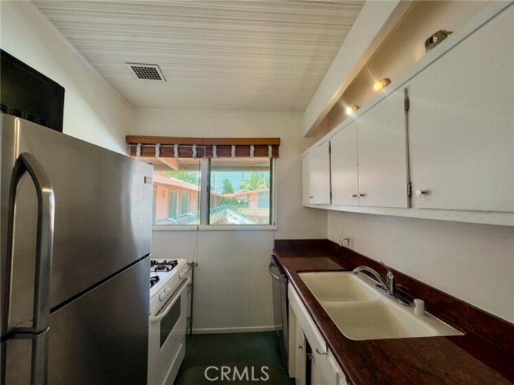 A rare opportunity to own a true piece of Los Angeles architectural history at the legendary Hollywood Riviera, designed in 1954 by Edward Fickett, renowned leader of modernism. This unit—preserved in beautifully vintage condition—features authentic mid-century amenities, including signature beamed ceilings, paneled walls, and green-toned concrete floors that echo the era’s minimalist modernism. Perched on the top floor, this west-sunset–facing unit is flooded with natural light, with oversized floor-to-ceiling windows offering views of lush greenery and the building’s bold mid-century lines. The home includes a classic bathroom with a tiled shower/tub combo and a spacious living room perfect for showcasing your modernist aesthetic. The open-concept layout is rarely available in condominium construction and more commonly found in single-family homes—truly offering the best of both worlds: price, style, and original character. Enjoy the charm of its timeless fixtures, along with the potential to thoughtfully restore or modernize with your personal touch. The building features tropical landscaping, a resort-style courtyard pool, secure entry, community laundry, EQ insurance, and Mills Act benefits for significant property tax savings. Just a block off the Sunset Strip, this is quintessential West Hollywood living—architecturally iconic, culturally vibrant, and impossibly well-located.