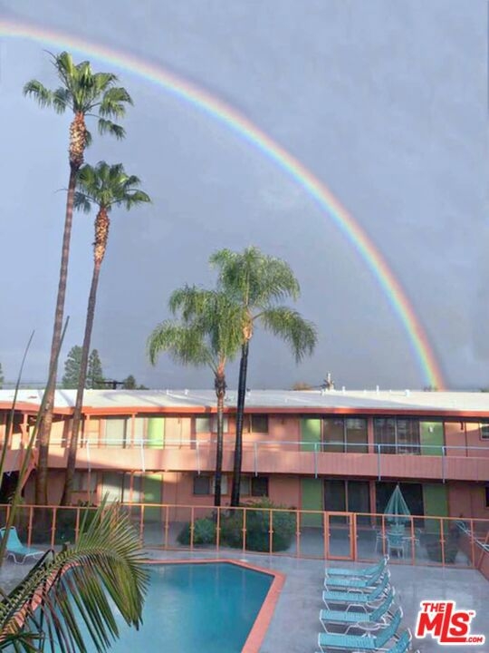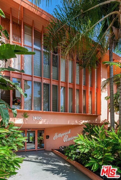 The iconic "Hollywood Riviera" is an architecturally significant West Hollywood treasure and designated landmark. It was built in 1954 by renowned architect, Edward H. Fickett. This charming first floor unit with hardwood flooring and large windows throughout this light and bright open floor plan offers a recently renovated kitchen, restoring all the original mid-century cabinetry serving the dinning/living. Step out to the large private rear patio for indoor/outdoor entertaining. Walk out the front door to the resort-like, heated swimmers pool and sunning deck. The secured main building entry features lava rock and tropical plantings. Automated gated covered parking for 2 cars. On the Mills Act passing huge property tax savings to the buyer. Featured in films such as (Rush Hour, L.A. Stories + many more), TV shows, & commercials. Tree-lined street in best location - walk to Sunset's shops, entertainment and restaurant's. This is California living at it's finest!