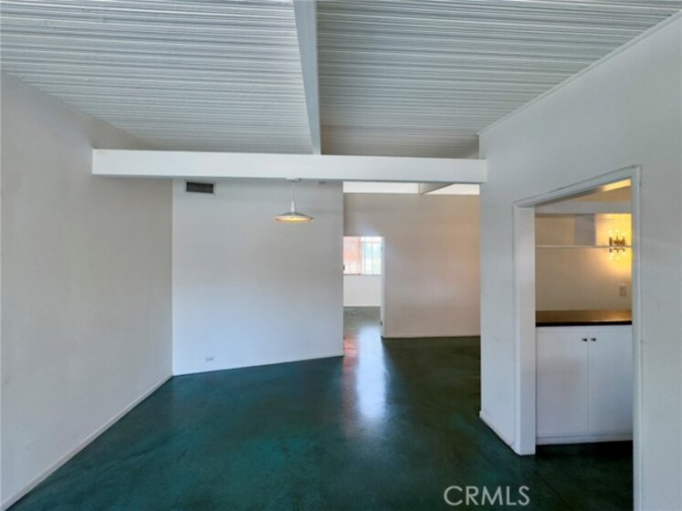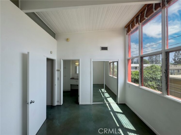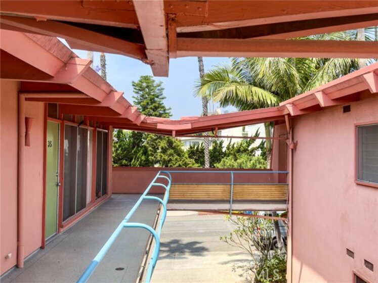 A rare opportunity to own a true piece of Los Angeles architectural history at the legendary Hollywood Riviera, designed in 1954 by Edward Fickett, renowned leader of modernism. This unit features the authentic mid-century amenities, including signature beamed ceilings, paneled walls, and green-toned concrete floors that echo the era’s minimalist modernism.Perched on the top floor, this west-sunset facing unit is flooded with natural light with oversized floor-to-ceiling windows offering views of lush greenery and the building’s bold mid-century lines. Includes a classic bathroom with tiled shower/tub combo, and a spacious living room perfect for showcasing your modernist aesthetic.The open-concept layout is rarely available in condominium construction and more prevalent with single family homes; best of both worlds...price and style. Enjoy the charm of the timeless fixtures and the potential to restore or modernize with your personal touch. The building features tropical landscaping, a resort-style courtyard pool, secure entry, community laundry, EQ insurance, and Mills Act benefits for significant property tax savings. Just a block off the Sunset Strip, this is quintessential West Hollywood living—architecturally iconic, culturally vibrant, and impossibly well-located.