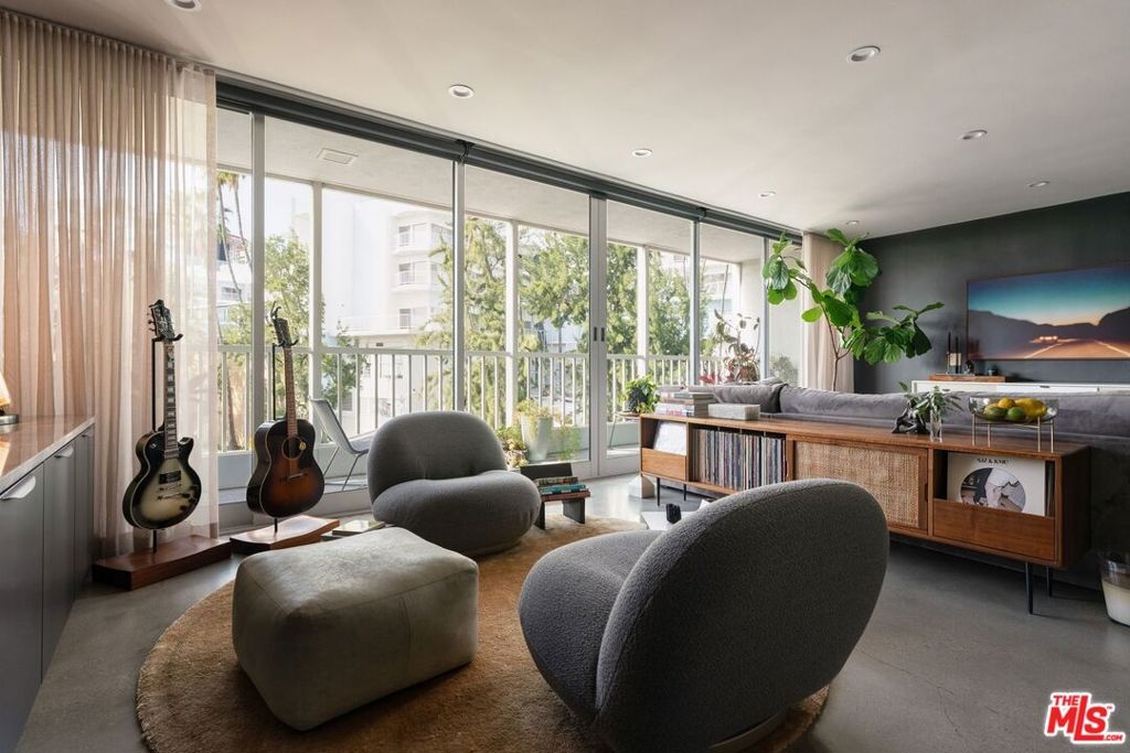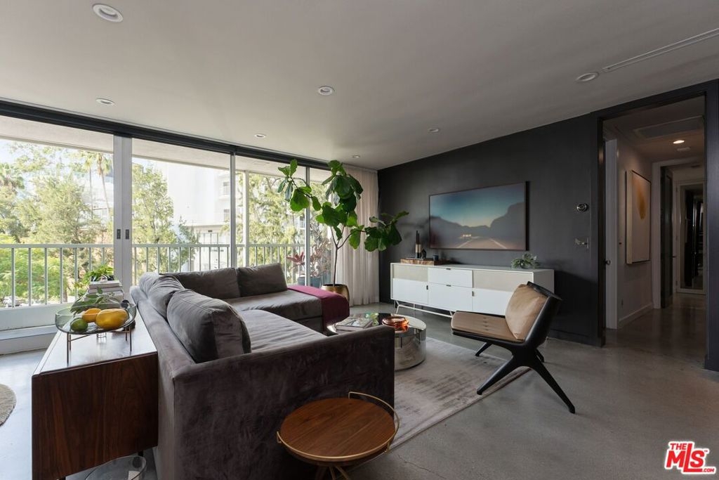 The Sunset Penthouse Iconic Mid-Century WeHoExperience LA living at its finest in this 1,389 sq ft, 2-bedroom, 2-bath penthouse on the Sunset Strip. Fully renovated in 2020, every detailfrom polished concrete floors to custom cabinetry was crafted for design lovers and entertainers. Floor-to-ceiling stacking doors open to a west-facing balcony with sweeping views of the Sunset Tower Hotel and stunning sunsets. The oversized primary suite is a private retreat with a walk-in closet and spa-inspired bath featuring a free-standing soaking tub, granite shower, and Toto toilet. Gourmet kitchen with JennAir, Bosch, and Futura appliances, 8-ft natural stone island, and paneled refrigerator make entertaining effortless. Luxury touches abound: designer lighting, natural stone finishes, motorized Hunter Douglas shades, 2025 energy-efficient windows, side-by-side secured parking, generous storage, and a rooftop deck with 360 city-to-hills views. A rare sanctuary for those who crave style, comfort, and iconic Sunset Strip living.
