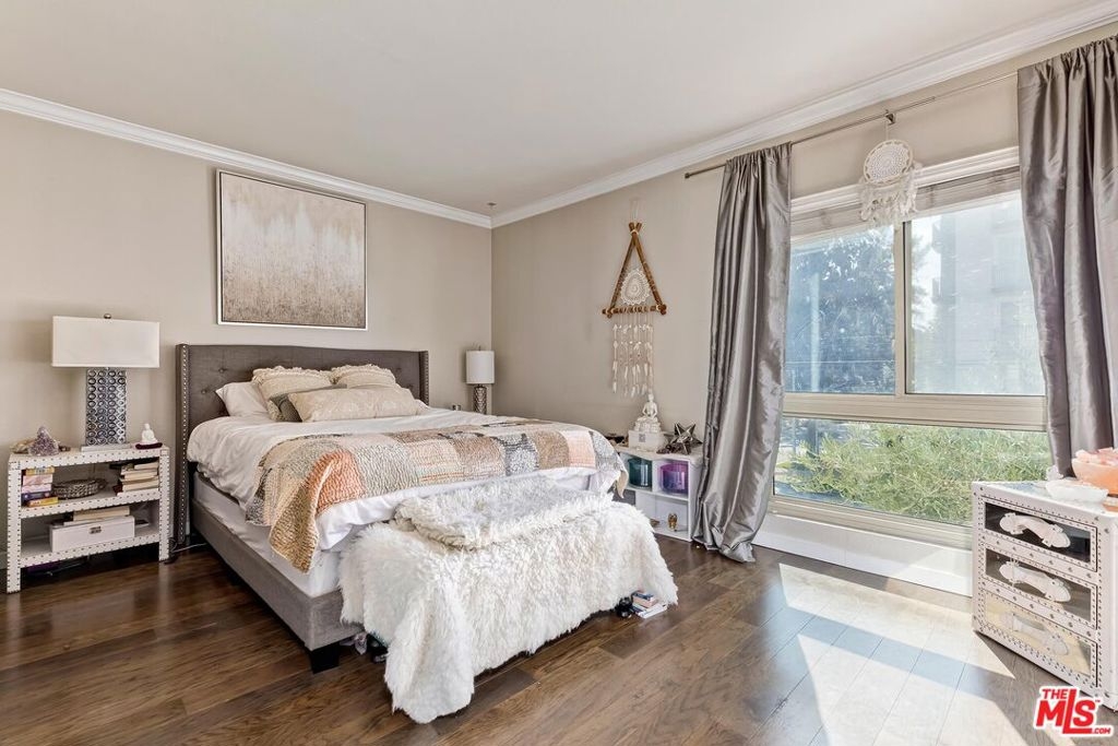 Great opportunity to own a bright and beautiful corner unit! The inviting open floor plan includes a spacious family room that will lead you to your balcony for you to enjoy the sunshine. The home also boasts two fabulous bedrooms, making the primary bedroom your own private get away, featuring a spacious walk-in closet and an en-suite bathroom. This unit has its own washer/dryer. The Rob Clark building offers a sparkling pool and awesome fitness center to fulfill all your amenity needs. Close to many restaurants, shopping and Cedars-Sinai! Highly sought after and coveted neighborhood!
