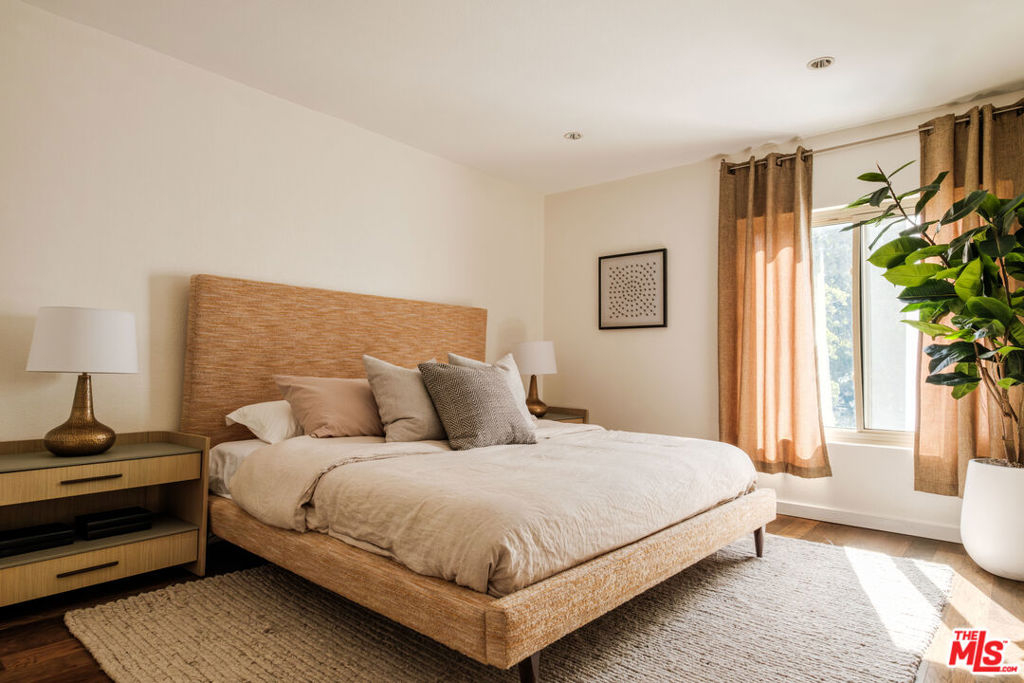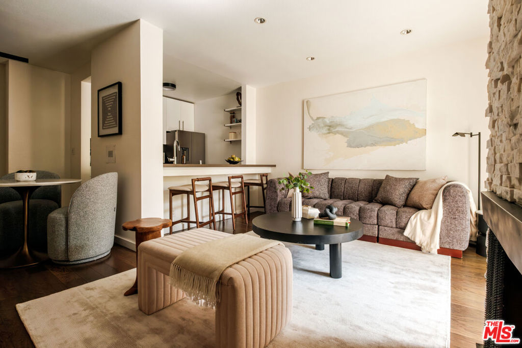 Top-floor living in prime Beverly Grove. This bright and spacious one bedroom condo offers comfort and style in one of Los Angeles' most desirable neighborhoods. The heart of the home is the living room, centered by a fire place and private patio. The open-concept kitchen with bar integrates the home's spaces, creating an ideal setup for everyday living and entertaining. The oversized bedroom easily fits a king bed, and has generous closet space and storage. Complete with in-unit laundry, assigned parking, and move-in-ready appeal, this home checks all the boxes. Enjoy a full suite of building amenities including a pool, fitness center, and barbecue area, while being just minutes from Cedars-Sinai, Beverly Hills, West Hollywood, and some of the city's best shopping and dining. A rare opportunity to own a top-floor condo in an unbeatable location.