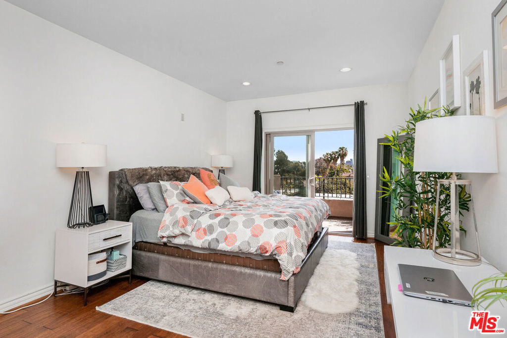 Motivated Seller!! Private turnkey top floor unit in the coveted Curson Villas. Wonderful natural light flows through the unit w/ a fantastic open floor plan ideal for entertaining that connects the dining/living room with a fireplace and balcony overlooking treetops and city lights. Hardwood floors, central heat & air, granite countertops, stainless steel appliances, and W/D in the unit. Your grand suite consists of a private balcony, large walk-in closet, travertine tile bathroom with soaker tub, and dual vanities. The 2nd bedroom has its own views w/ en-suite full bathroom and large closet. Walking distance to Farmer's market with an array of delights, close proximity to Runyon Canyon, Bristol Farms, Whole Foods, Trader Joe's, Griddle Cafe, Cheebo, short stroll to a brand new shopping/dining experiences in development on Sunset Blvd and wind down after work at El Compadre for a fabulous margarita. Special opportunity in a convenient location - amenities include secure parking + 6 guest parking spots, security cameras, and a fitness room/gym.