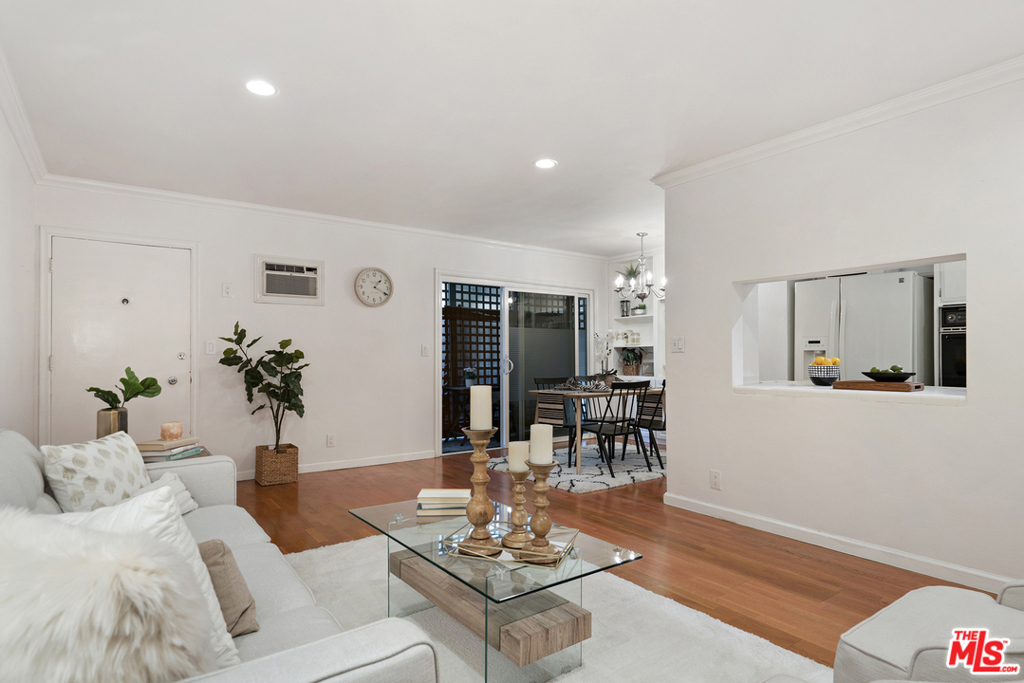 This 1-bedroom condominium is located on one of the best streets in West Hollywood, just below Sunset Boulevard. Smaller complex with only 20 units, pool and gated parking. Features are: Open floor plan, hardwood floors, dining area with built-in shelves, smooth ceilings, crown molding, dishwasher, and an ample sized master bedroom with great closet space. Additional features are: custom window shutters, gated entry, covered outdoor patio and community laundry. Phenomenal Location close to the great restaurants, coffee shops, gym, Whole Foods, hiking and the very best of West Hollywood & the Sunset Strip!