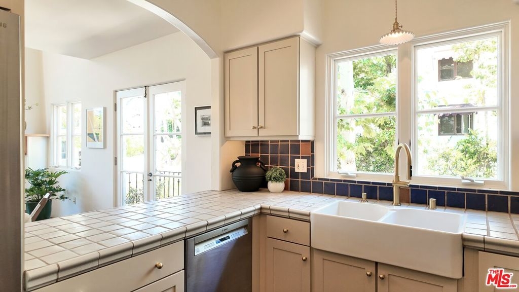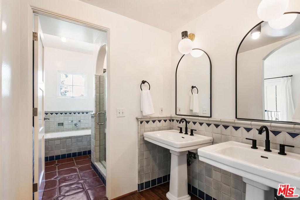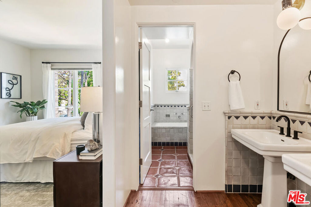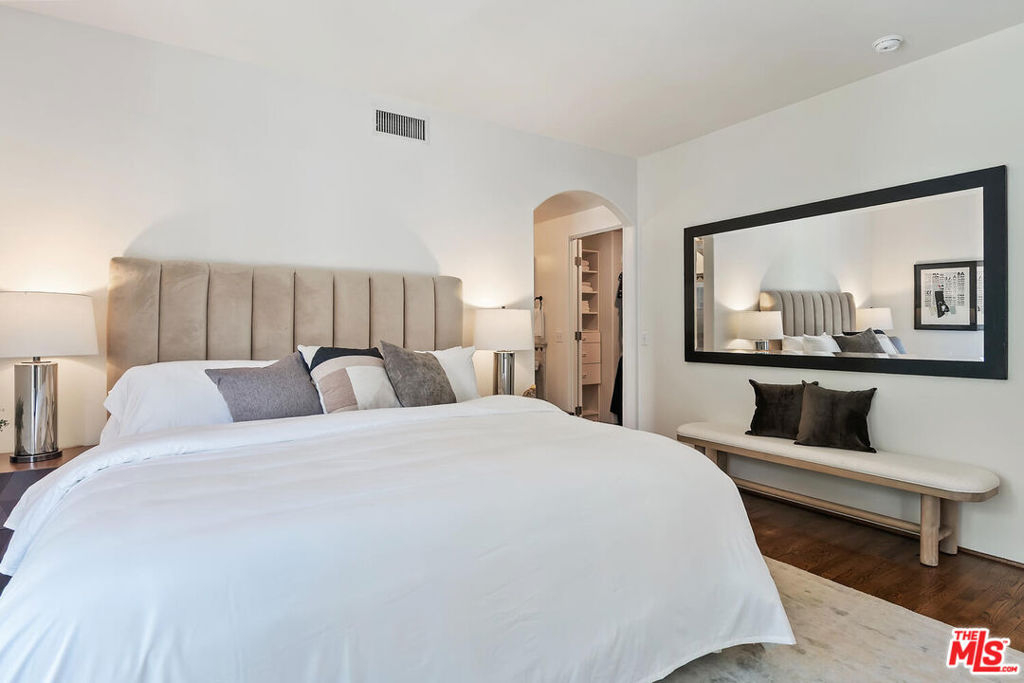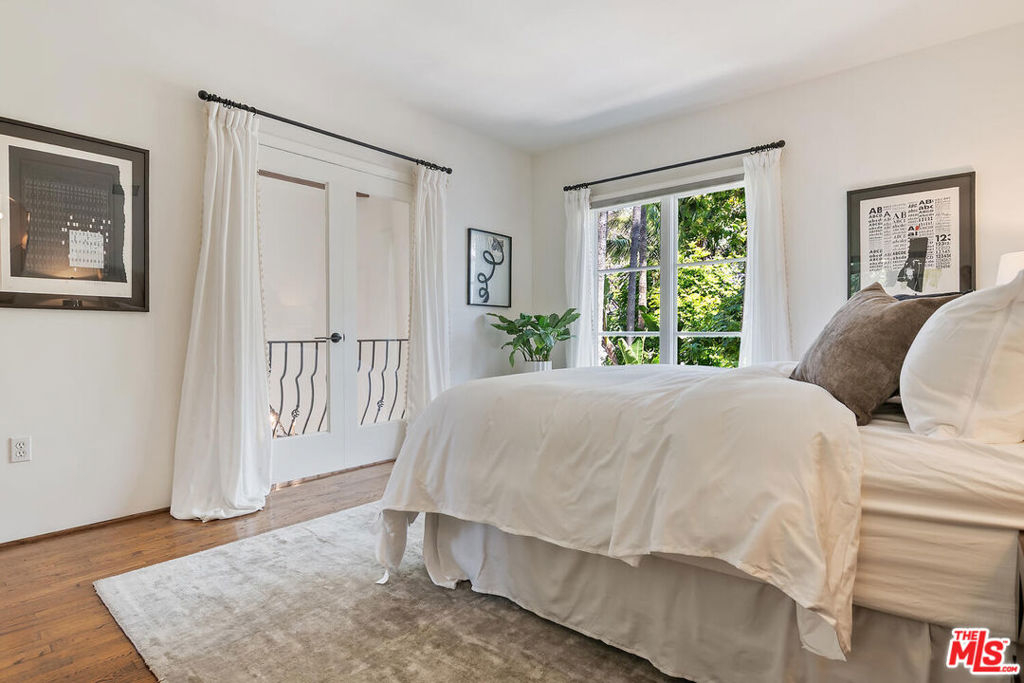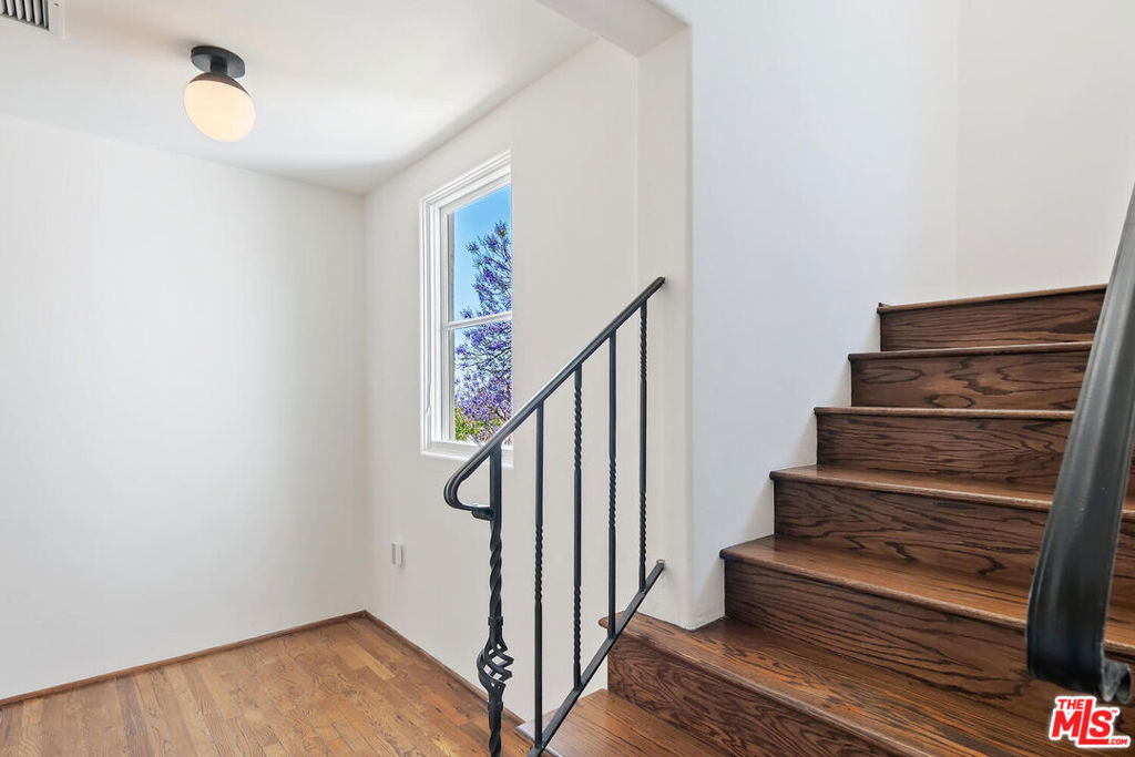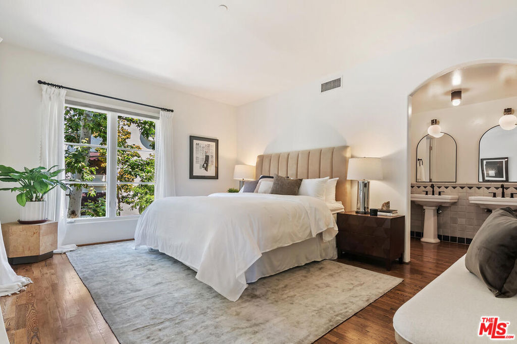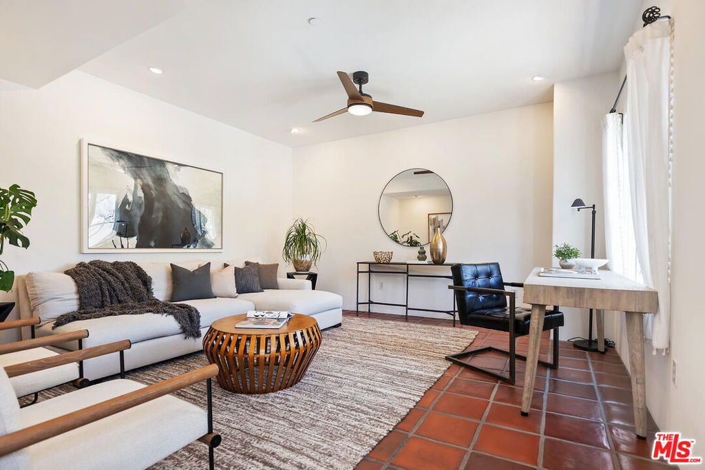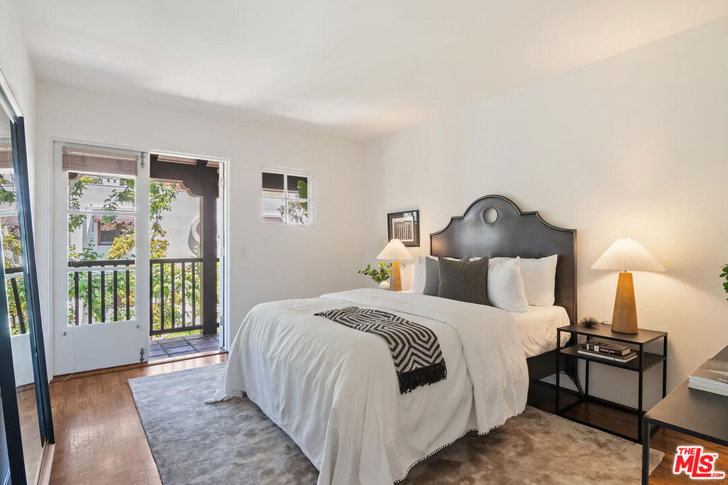 Rare opportunity in West Hollywood's Historic Harper Avenue District! Dramatic townhome in the highly coveted Spanish Revival 7 Fountains Community, designed by renowned architect Stefanos Polyzoides. One of only 20 villa townhomes, this private front corner unit boasts breathtaking wrap around views to the north, south and west. Wake up to living in a beautiful botanical garden-like feel and choose to end your day enjoying a relaxing sunset from your romantic balcony or high in the sky roof deck patio. Inviting living room with soaring ceiling, grand two-story fireplace and balcony, with views of the Hollywood Hills and city lights. The open living space incorporates the kitchen, dining area, and powder room, providing a perfect flow for entertaining. Keep your commute to work short and trouble free. The separate multi purpose room connected by a private breezeway is the perfect space, replete with views of West Hollywood and into Century City. Let your imagination run wild and use it as a home office, media room, guest bedroom, yoga studio or... A beautiful hardwood stairway takes you to the Primary Suite, situated on its own floor with wonderful French doors to Romeo & Juliet balcony, large walk-in closet, plus add'l closet, dual sinks, large tub & separate shower. Additional bedroom suite on 3rd floor has fireplace, full bath and views. The 3rd bedroom suite has a romantic Montecito inspired balcony overlooking the Hollywood Hills & Century City. There is a full bath and additional closets. You will love the outdoor patio deck with sweeping city views including the iconic Mirador sign, beautiful foliage, and all the festivities of West Hollywood and Santa Monica Blvd. The grounds of the Award Winning 7 Fountains community feature lush landscaping, beautiful fountains, koi pond, seating area with fireplace and peaceful reading room. Each of the 7 fountains features a unique mosaic design, using hand painted tile. There are 3 separate parking spaces in the garage, huge dedicated storage room, plus plenty of guest parking. Great location, convenient to award winning shops & entertainment, nightlife and the famous Sunset Strip. Come spoil yourself! Don't miss Video and 3D Tours.