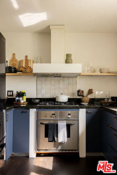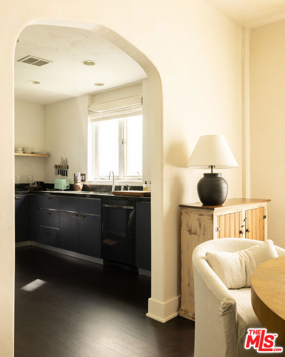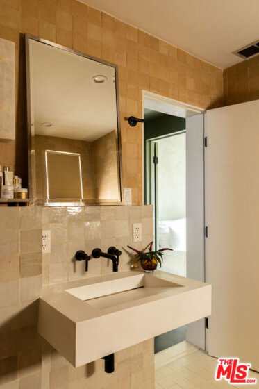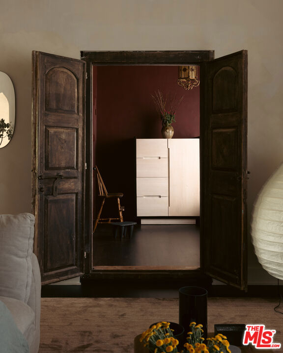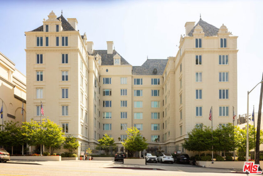 Located in one of West Hollywood's most iconic buildings, The Granville, this elegant two-bedroom, one-bath residence offers timeless character and abundant natural light. With coveted Mills Act status, the home also benefits from substantial property tax savings. The storied building was designed by the same architect behind the famed Plaza Athne in Paris, lending a rare sense of historic pedigree. Recently extensively remodeled with thoughtful design and artisan finishes, the residence blends Old Hollywood charm with refined modern updates through a California Wabi-Sabi inspired interior design that highlights natural materials, quiet textures, and understated elegance. High ceilings, classic moldings, and generous passageways frame the interiors, while new hardwood floors and curated details elevate the space. The spacious unit enjoys views of both the Sunset hills and the famed Chateau Marmont, while the dining room overlooking the communal courtyard fountains and anchored by a vintage Tom Greene brass torch chandelier offers an inviting setting for entertaining. The updated kitchen features natural stone surfaces, handmade zellige tile backsplash, and new appliances including a refrigerator and dishwasher. The reimagined bath showcases handcrafted tilework, a sculptural travertine tub, and custom finishes, complemented by subtle plaster style walls by Portola Paints. Additional upgrades include new HVAC, water heater, and in-unit laundry. Residents of The Granville enjoy a beautiful garden courtyard with fountain and outdoor seating, doorman service, and exceptional walkability to West Hollywood's best dining, shopping, and nightlife.